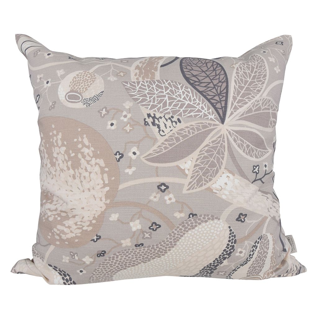 Kuddfodral 45 cm x 45 cm. Blixtlås i botten. Vårt absolut populäraste tryck på gardiner och textiler finns nu med vit botten och beige tryck.