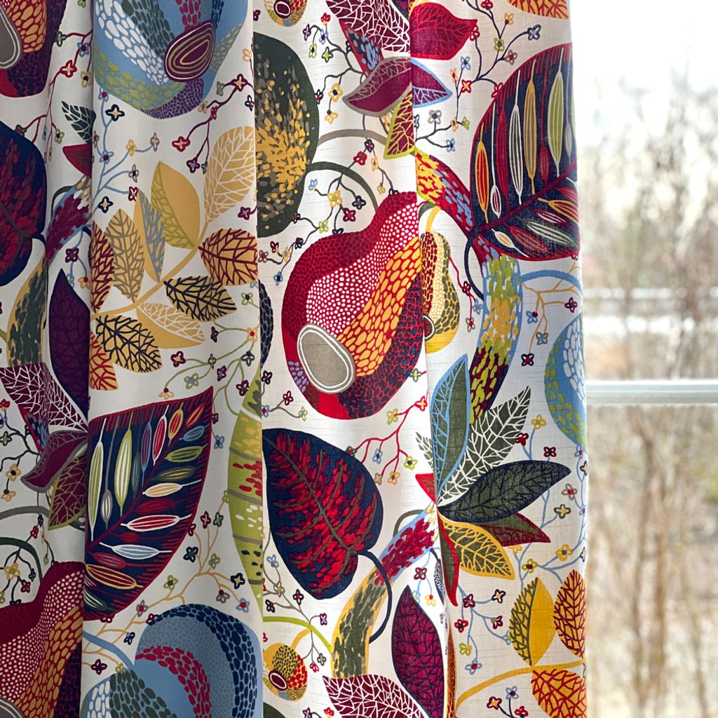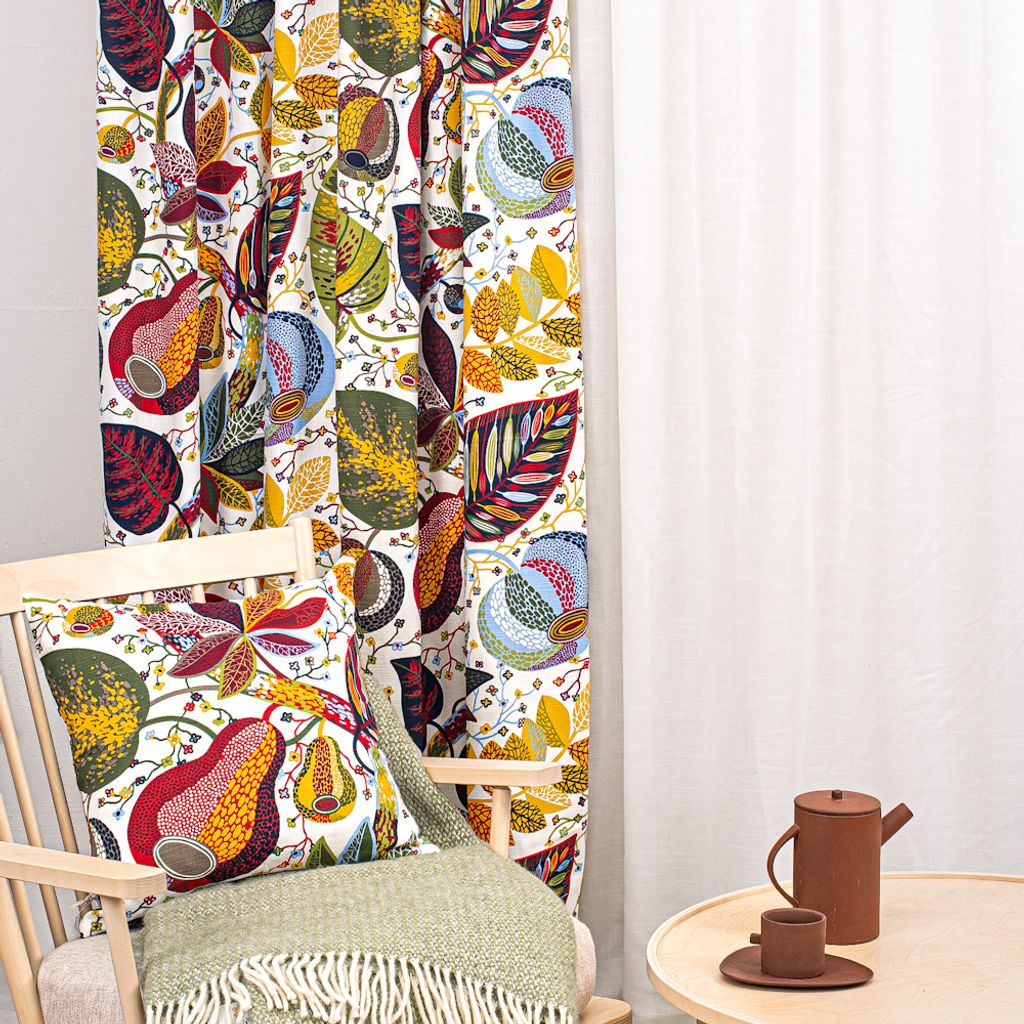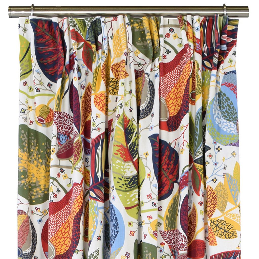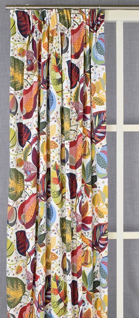 Skapa en levande och inspirerande atmosfär med våra Adam & Eva Multi Gardiner. Dessa gardiner är ett konstverk i sig, där varje veck bär på en historia av naturens färger och former. Med en design inspirerad av blad och frukter, erbjuder dessa gardiner en mix av djärva färger som rött, blått, grönt och gult, perfekt balanserade mot en ljus bakgrund.