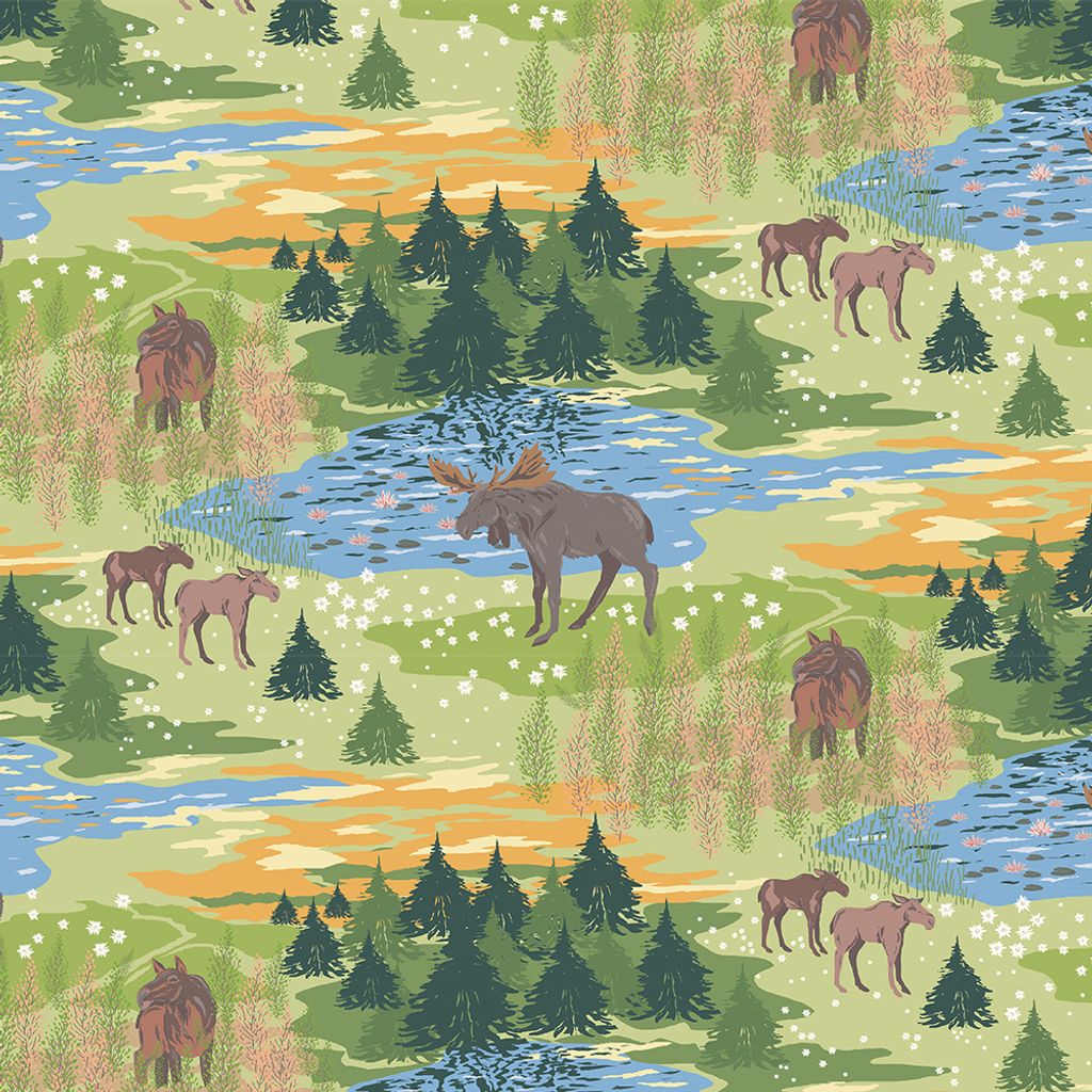 Älgrike grön tyg – Grön Tyg med Älgar och Skog