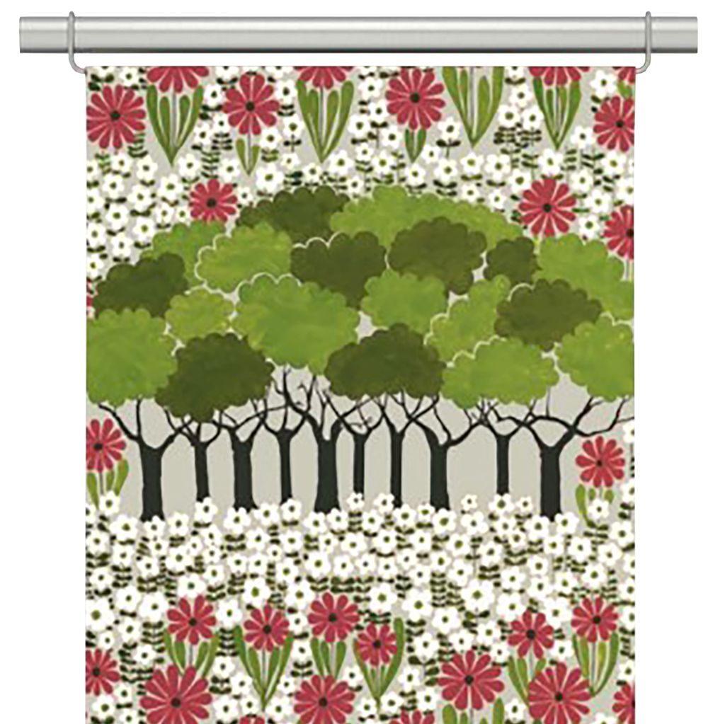 Snygga motivet Allé med mönster av gröna träd och blommor i retro stil och färg. Allé ifrån Arvidssons textil. Ofållad nederkant med overlocksöm.