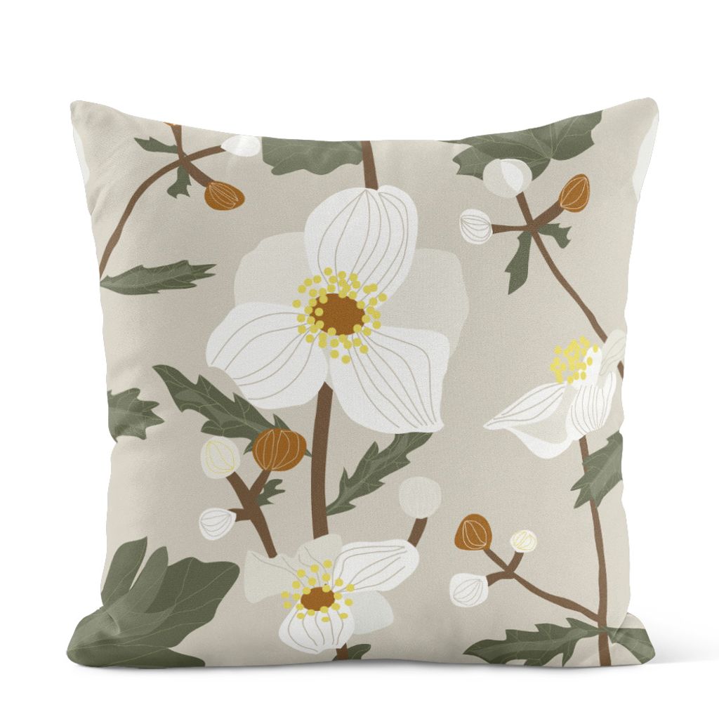 Ett Kuddfodral av tyget Anemon beige i Arvidssons klassiska bomullsvara. Produkten är stolt tillverkad i Estland.