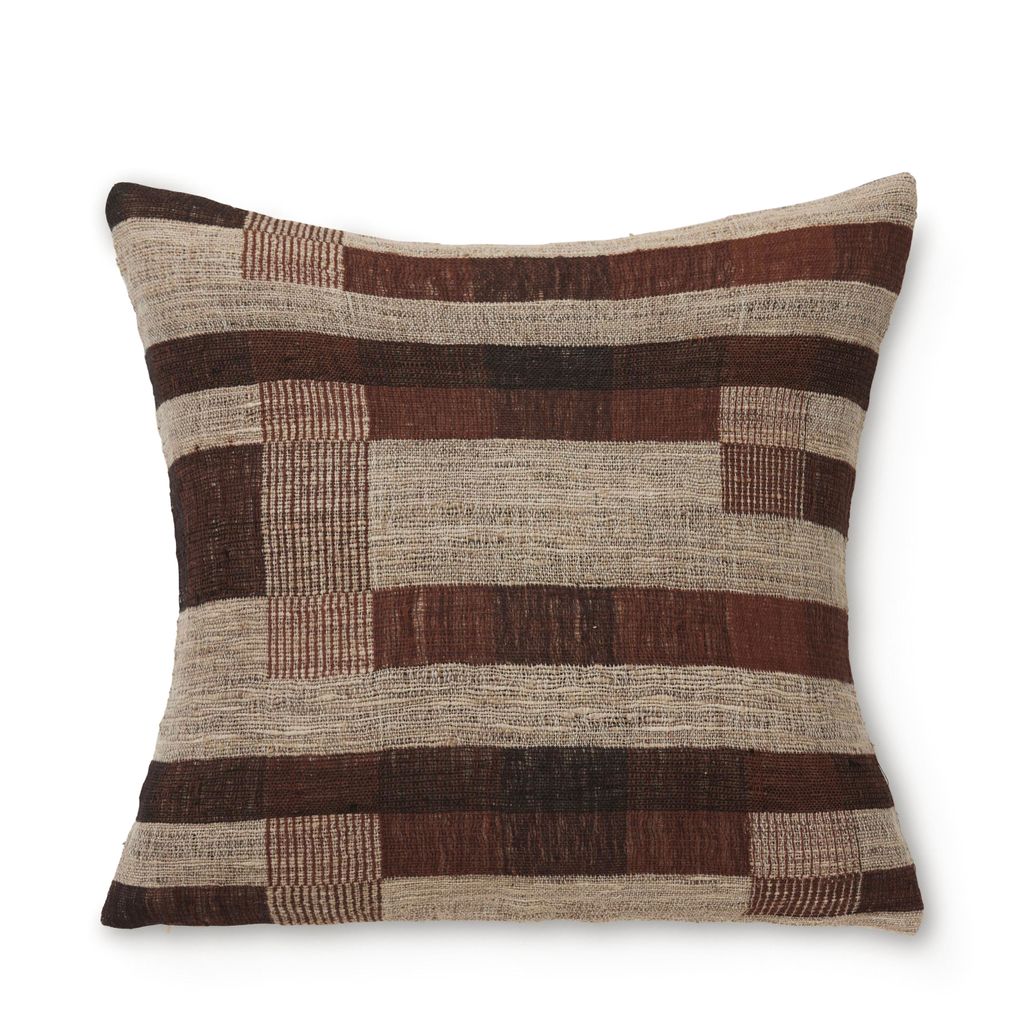 Det dekorativa mönstret i harmoniska bruna och beige toner skapar ett levande djup och ger rummet karaktär utan att ta över. Kombinationen av naturinspirerade färger gör kuddfodralet lätt att matcha med andra textilier och material – från linne och bomull till trä och sten.