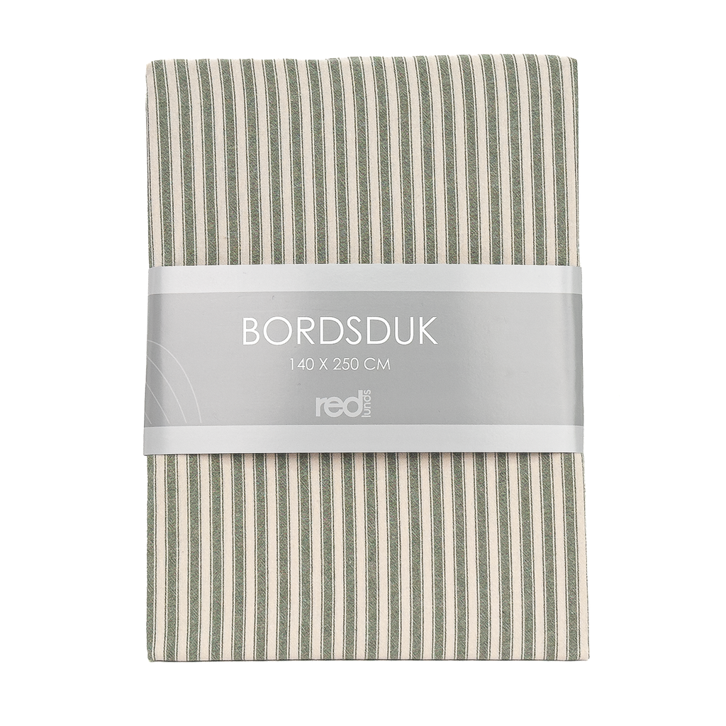 Stilren randig bordsduk i mörkgrönt. 100% bomull,140 x 250 cm – Perfekt till vardag och fest!