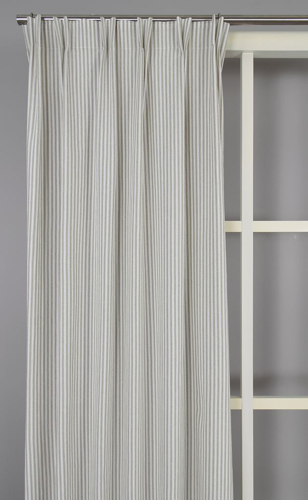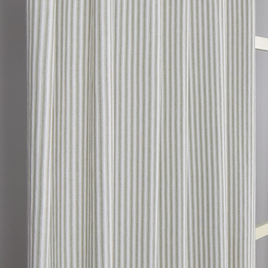 Anna grön smalrandiga gardinlängder i 100 % bomull. Multiband för flexibel upphängning och overlockad nederkant. Levereras i 2-pack.