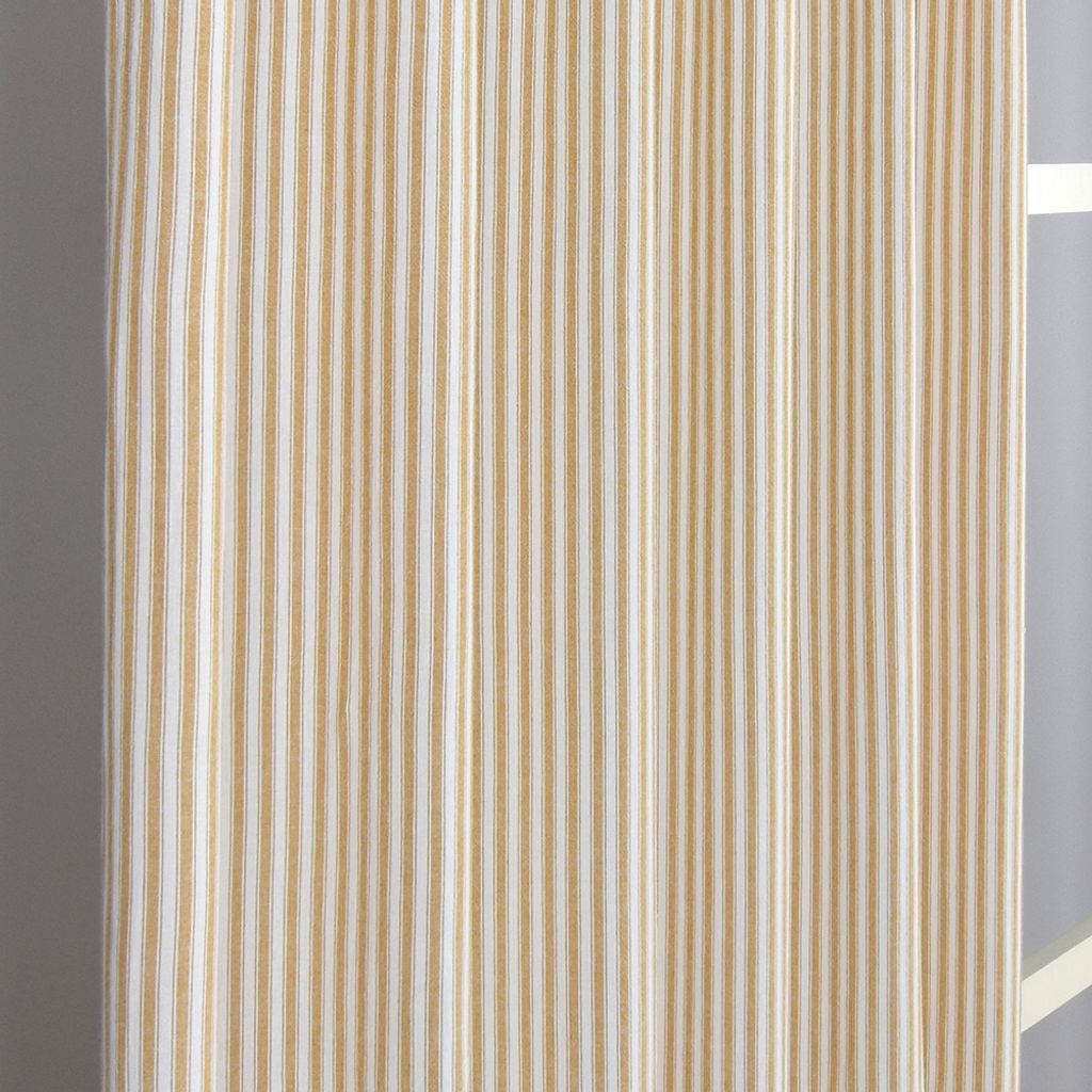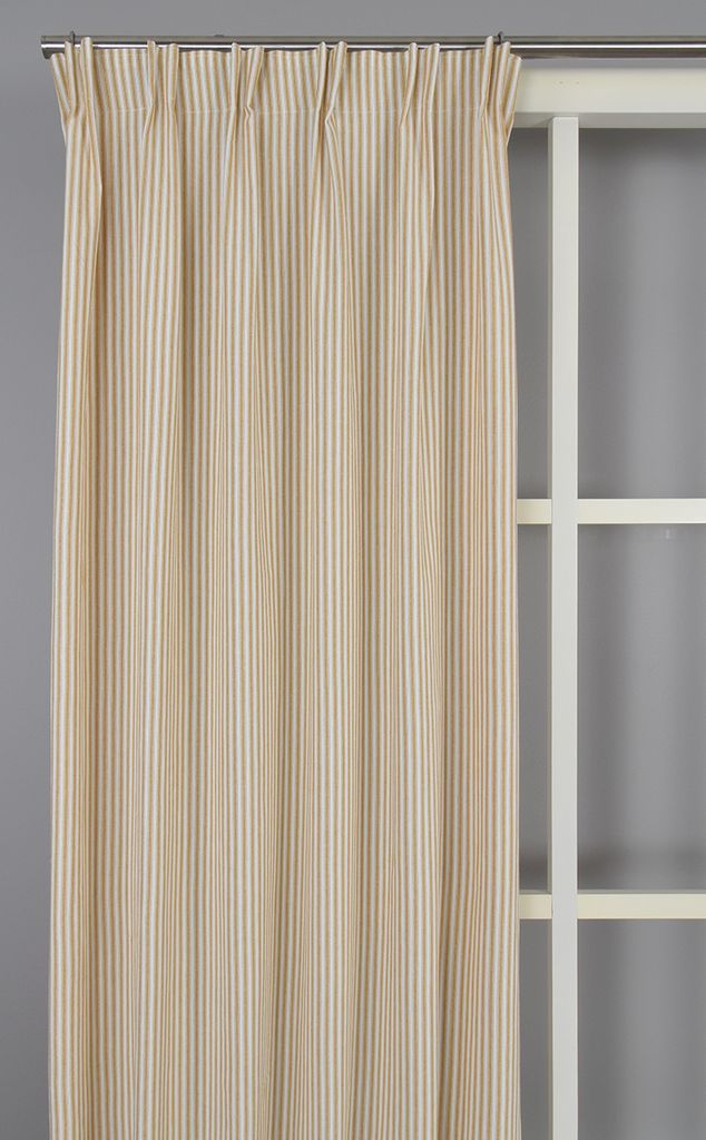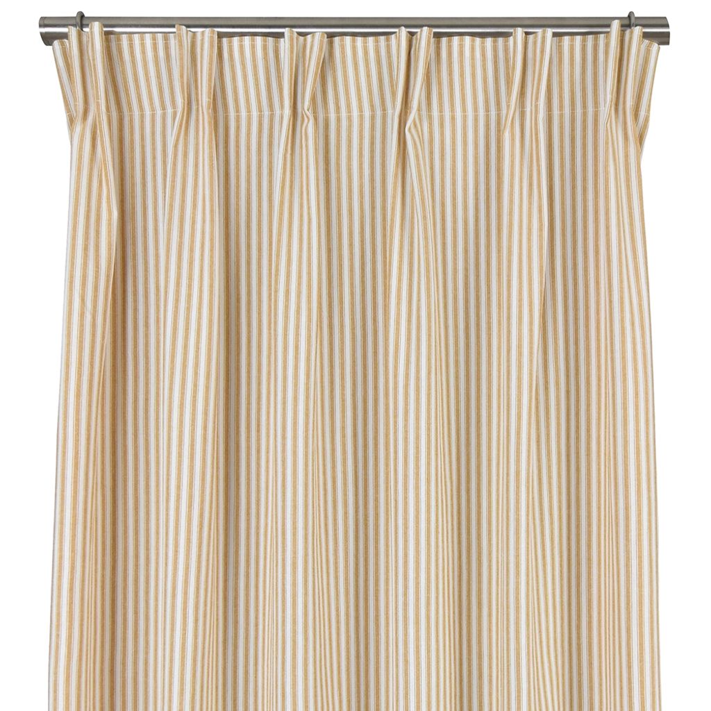 Dessa gul randiga gardinlängder är sydd med transparenta multifunktionella upphängningsband.
