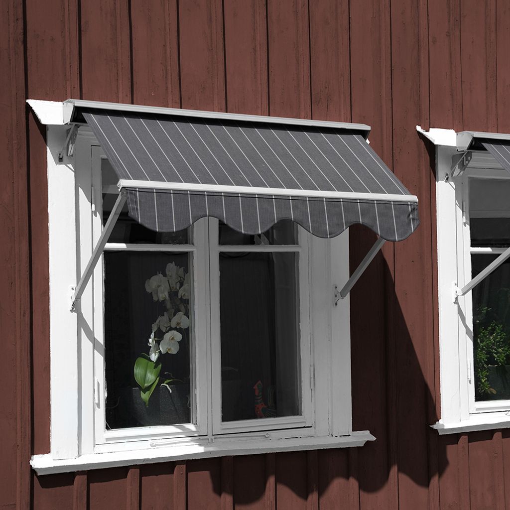 Beskrivning av Antiqua Mörkgrå-Vit Randig Markisväv 130cm Bred