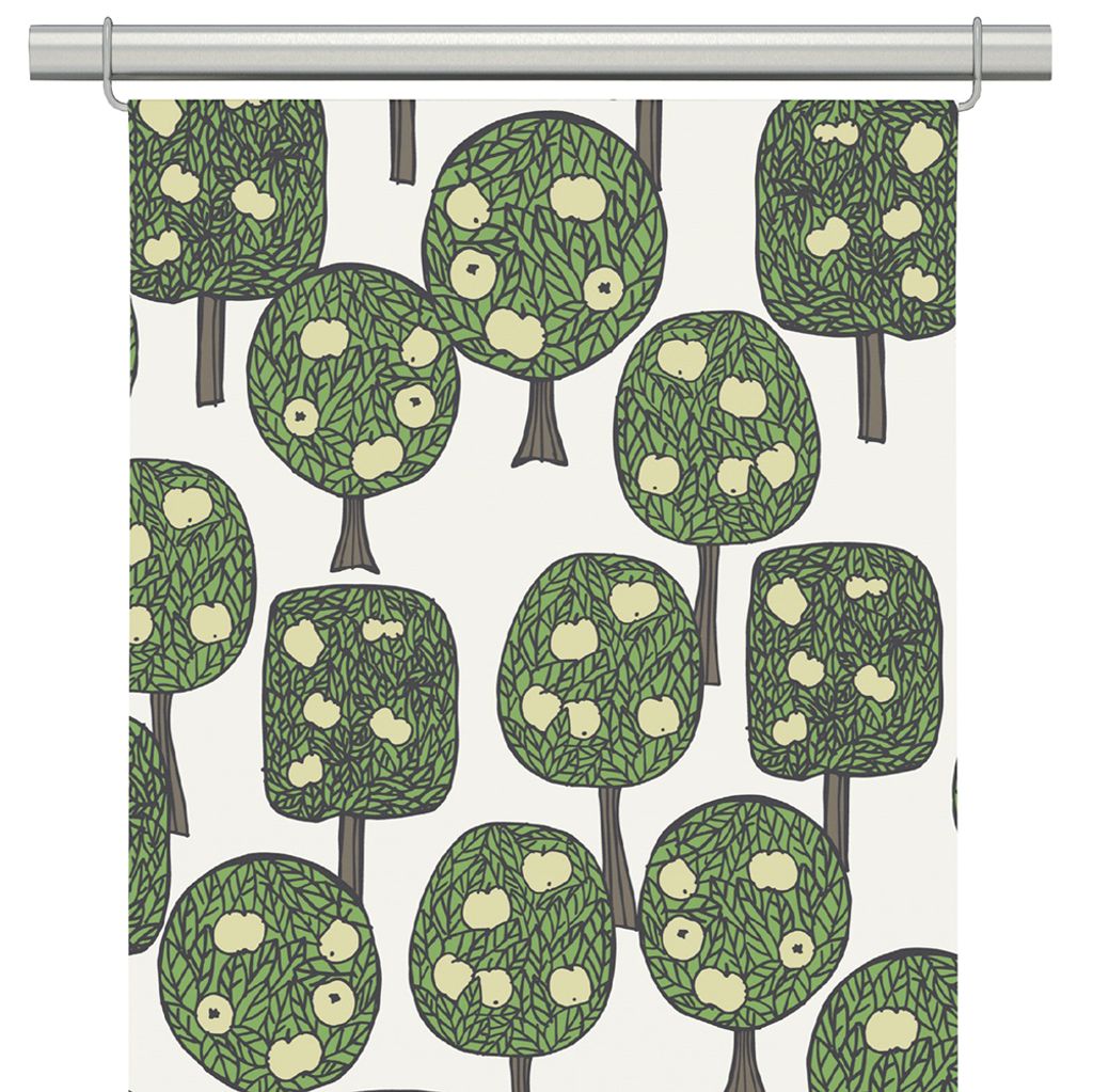 Äppelskogen ljusgrön 2-pack panelgardiner med härligt mönster med gröna äppelträd.