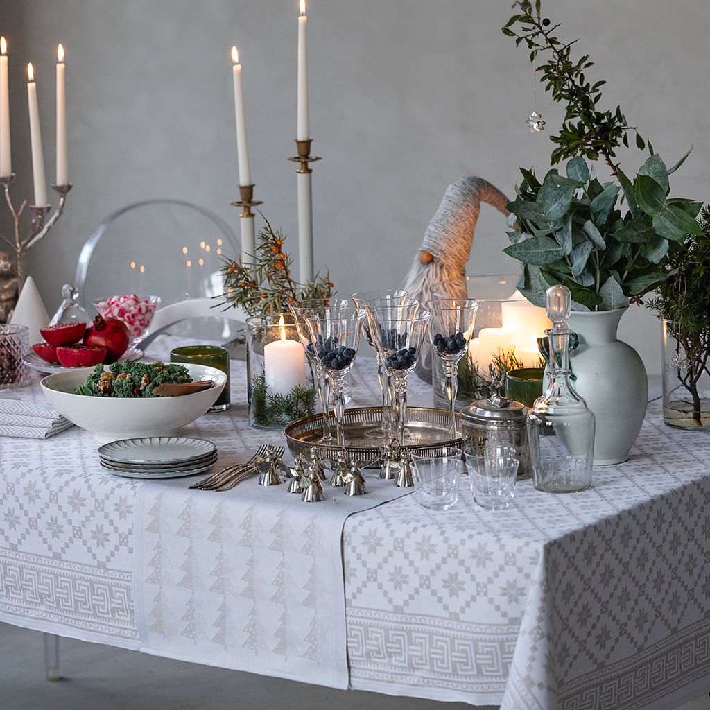 En duk som passar lika bra till långa middagar med gäster som till jul, påsk eller andra tillfällen där du vill skapa en varm och inbjudande helhet runt bordet.
