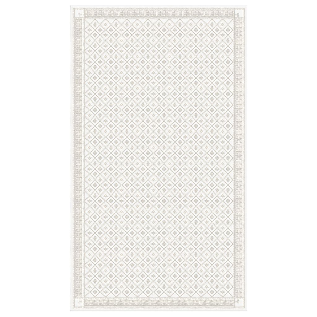 Åttebladsrose beige duk 150x260 cm är en vacker duk med ett klassiskt norskt mönster i mjuka, beige nyanser. En tidlös grund för både vardagsdukning och högtidliga tillfällen.
