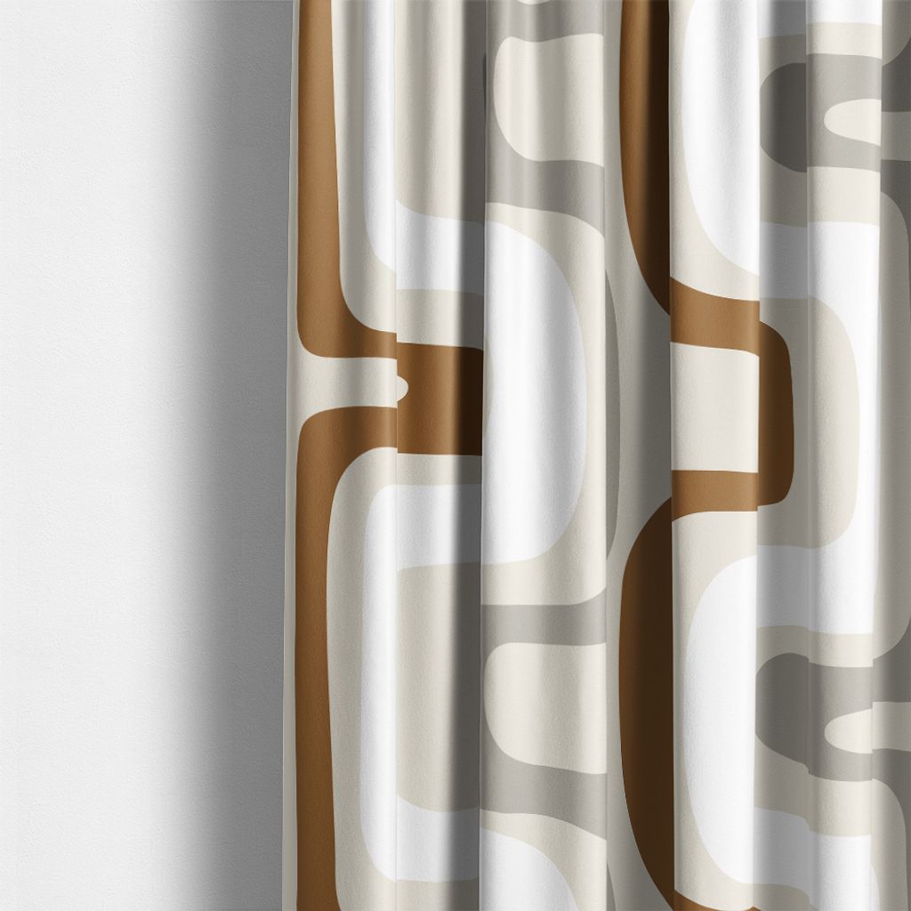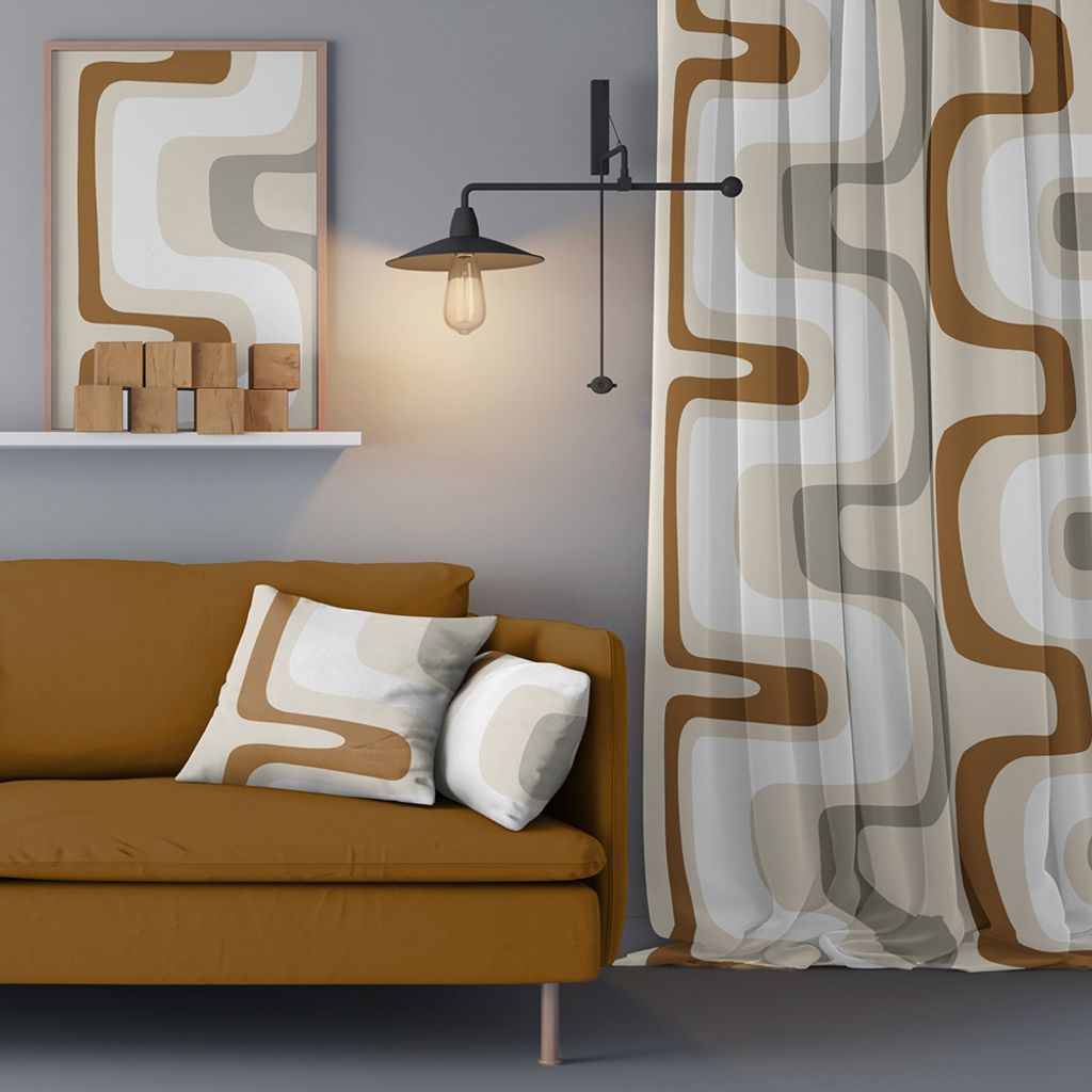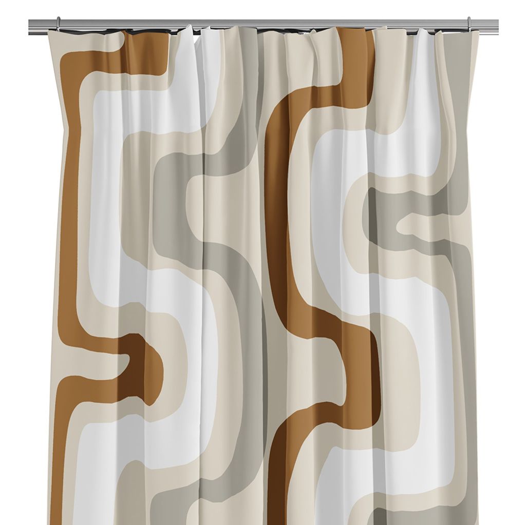 Bågar beige gardiner har ett retroinspirerat mönster med mjuka, böljande former i harmoniska jordnära nyanser. Det stilrena uttrycket ger en modern känsla med en touch av nostalgi. Multibandslängder i 2-pack.