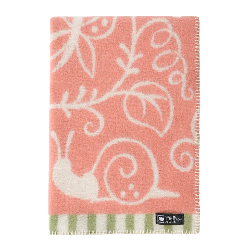 Barnfilt Lilla Snigel rosa - Ekologisk ull med lekfullt mönster