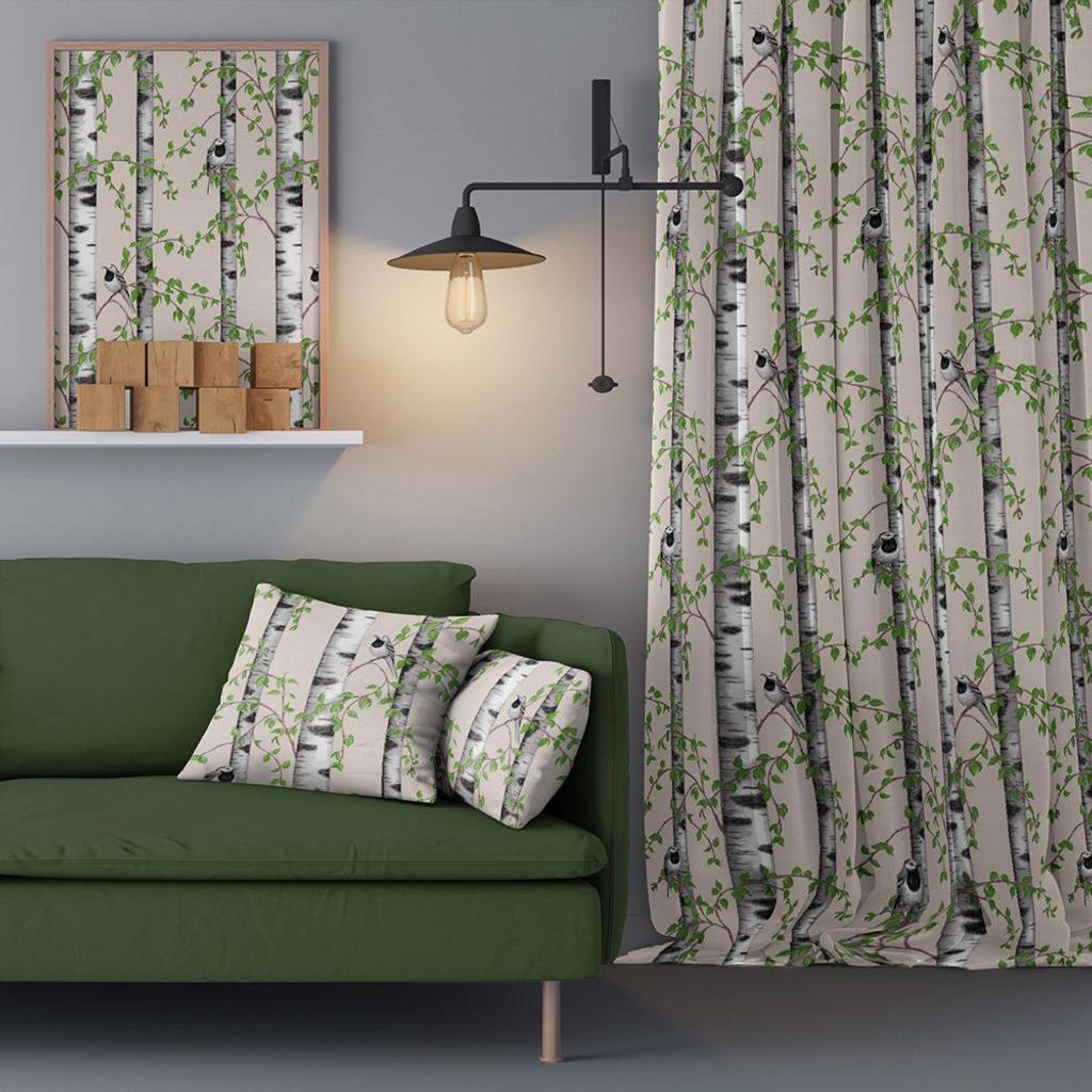 Beskrivning av Björkdungen beige gardiner