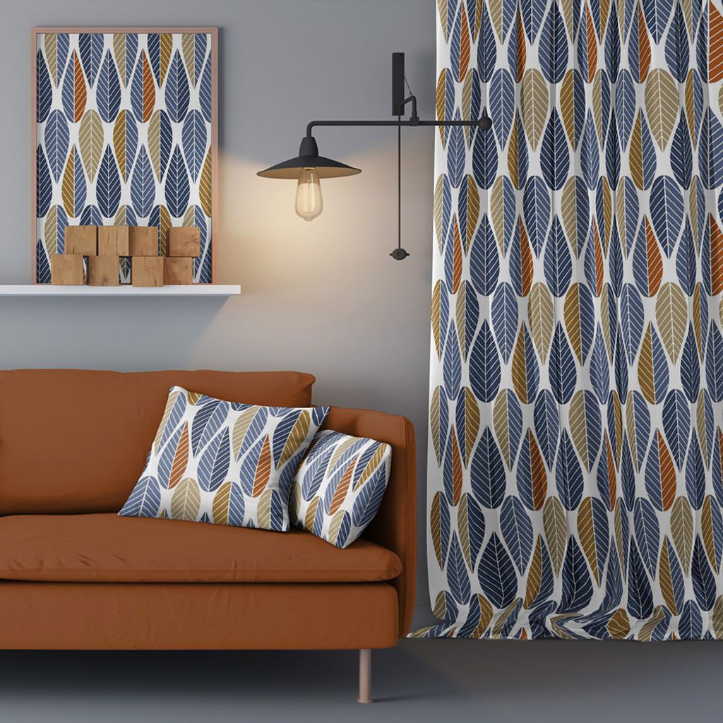 Beskrivning av Blader blå gardiner