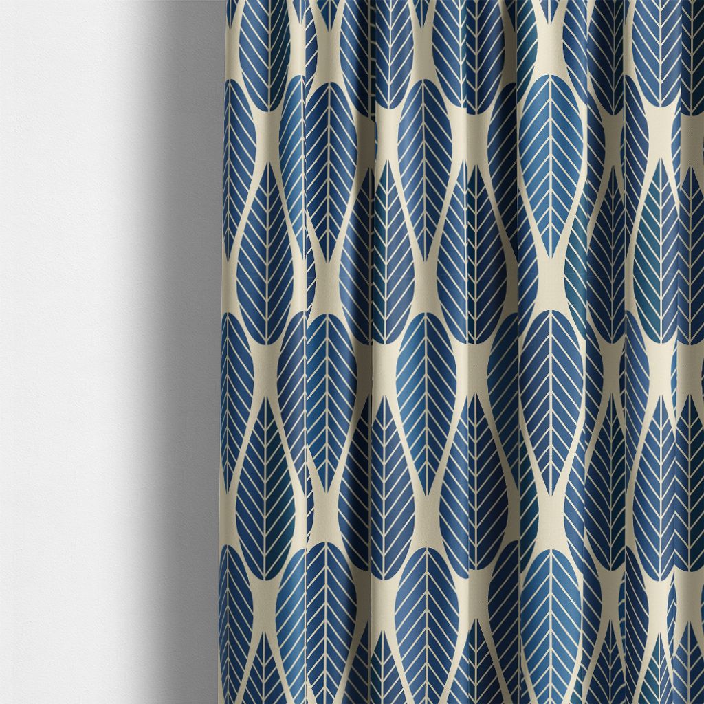 Bladmönstrat tyg i blå toner – retroinspirerat tyg som ger karaktär åt gardiner och textila detaljer.