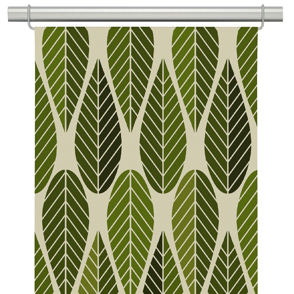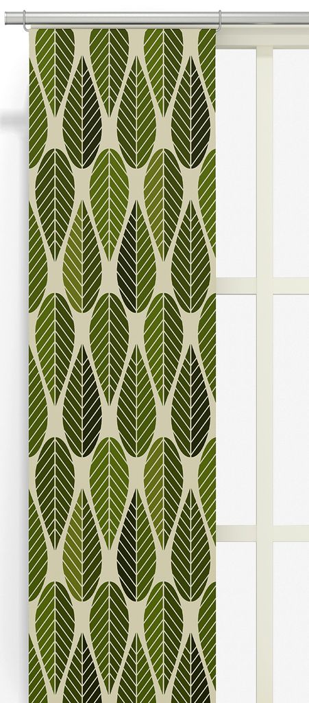 Blader culla grön panelgardin har ett stilrent bladmotiv i olika gröna nyanser mot en linnefärgad botten. En modern och naturnära gardin som skapar liv och harmoni i rummet.