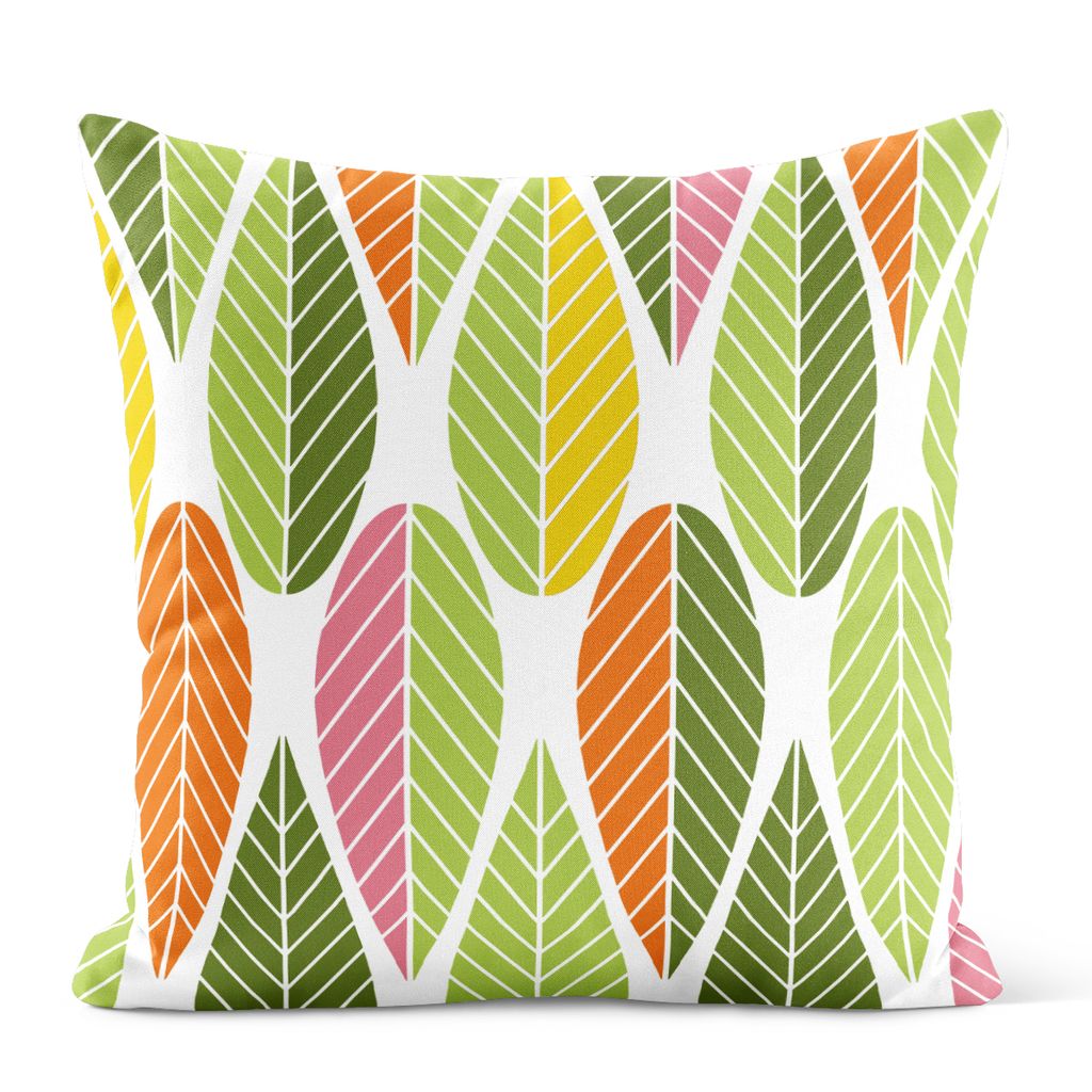 Blader grön-gul kuddfodral är ett färgstarkt tillskott till hemmet med ett grafiskt bladmotiv i gröna, gula och varma accentfärger på en vit botten. Ett dekorativt kuddfodral som ger soffan eller sängen liv och karaktär. Fodralet är 47x47cm med ett blixtlås i nederkant.
