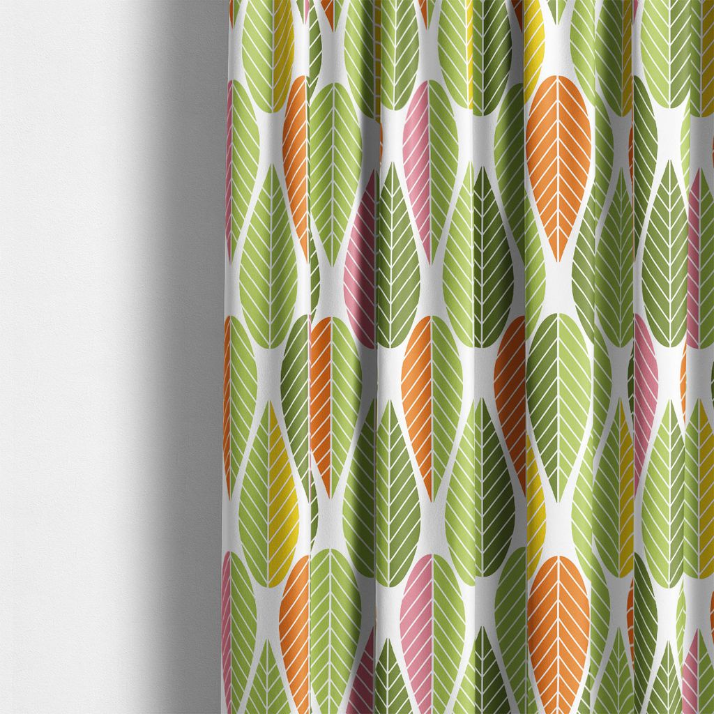 Populära Blader i färgerna grönt, gult, orange och rosa på offwhite botten. Detta grafiska mönster är inspirerat från 50-60 tal.