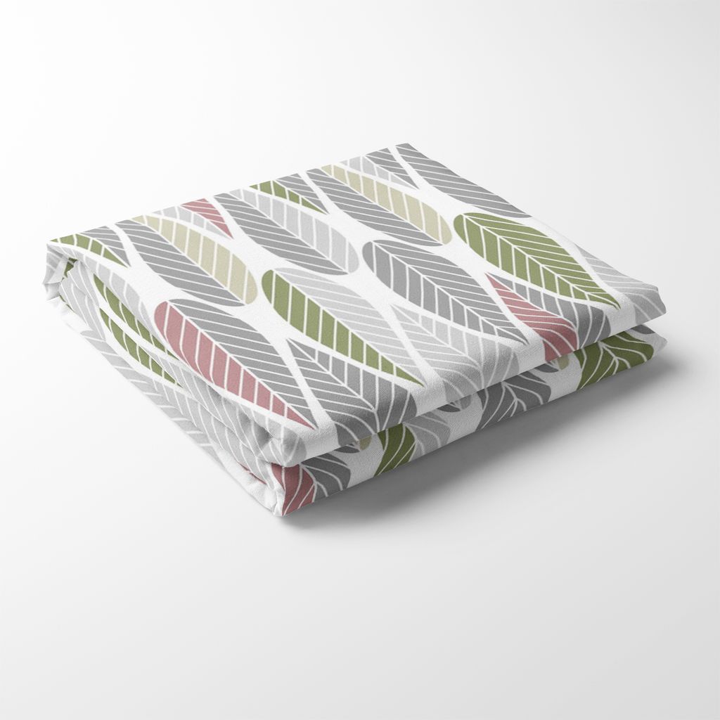 Populära Blader rosa som en bordsduk i färgerna, rosa, grön, grå och beige på offwhite botten. Retro mönster med blad.