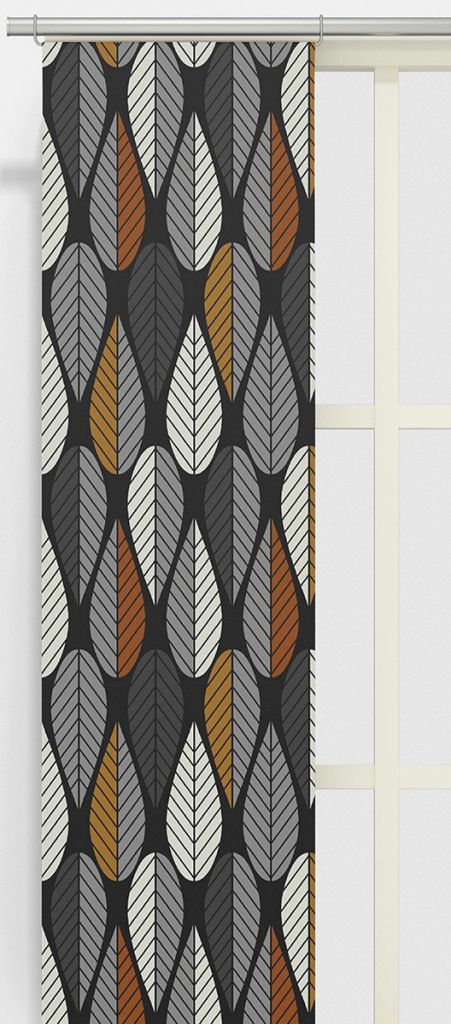 Följer krokar med til 2-pack panelgardiner, Blader svart-orange