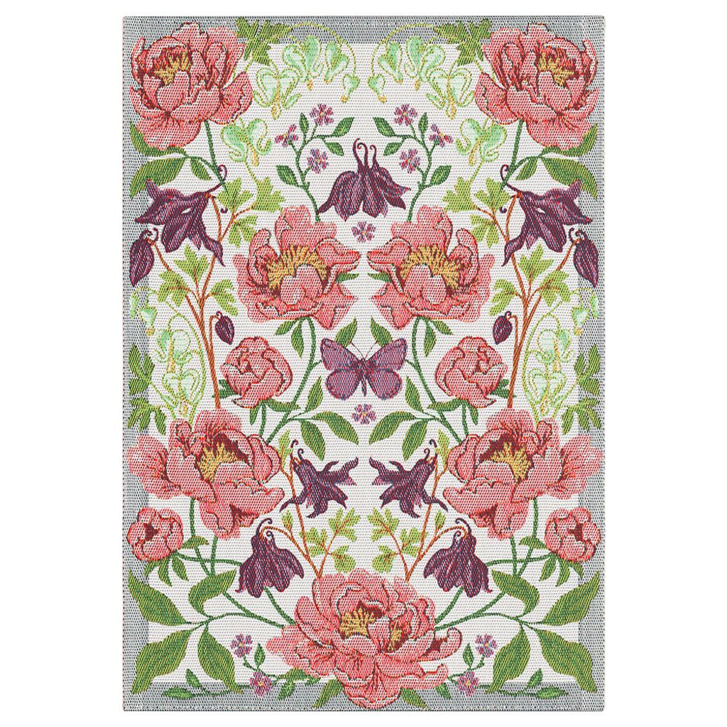 Blomsterfest kökshandduk 35x50 med ett romantiskt mönster av rosor och klockor. Tillverkad i Sverige av Ekelund Linneväveri i 100 % ekologisk bomull och GOTS-certifierad.