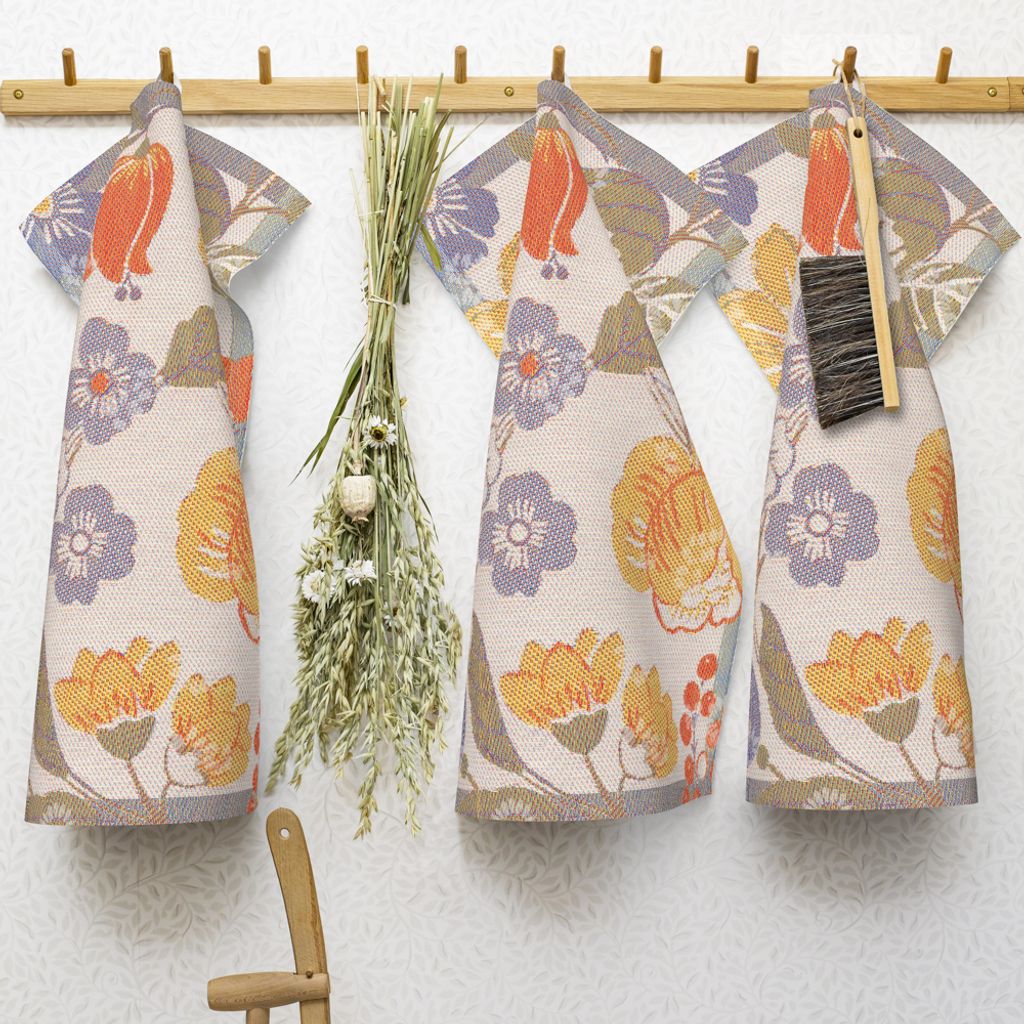 Svensktillverkad handduk. Det rika blommönstret är inspirerat av svensk natur och tillför en dos av naturens skönhet till ditt kök. Perfekt för att torka disk, händer eller bara hänga som en dekorativ detalj.
