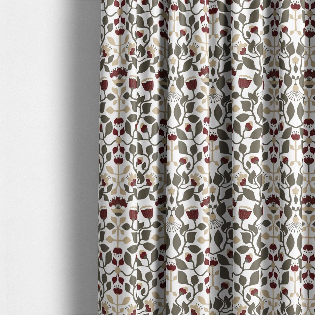 Elegant gardintyg med tätt blommönster i bruna och vinröda nyanser.