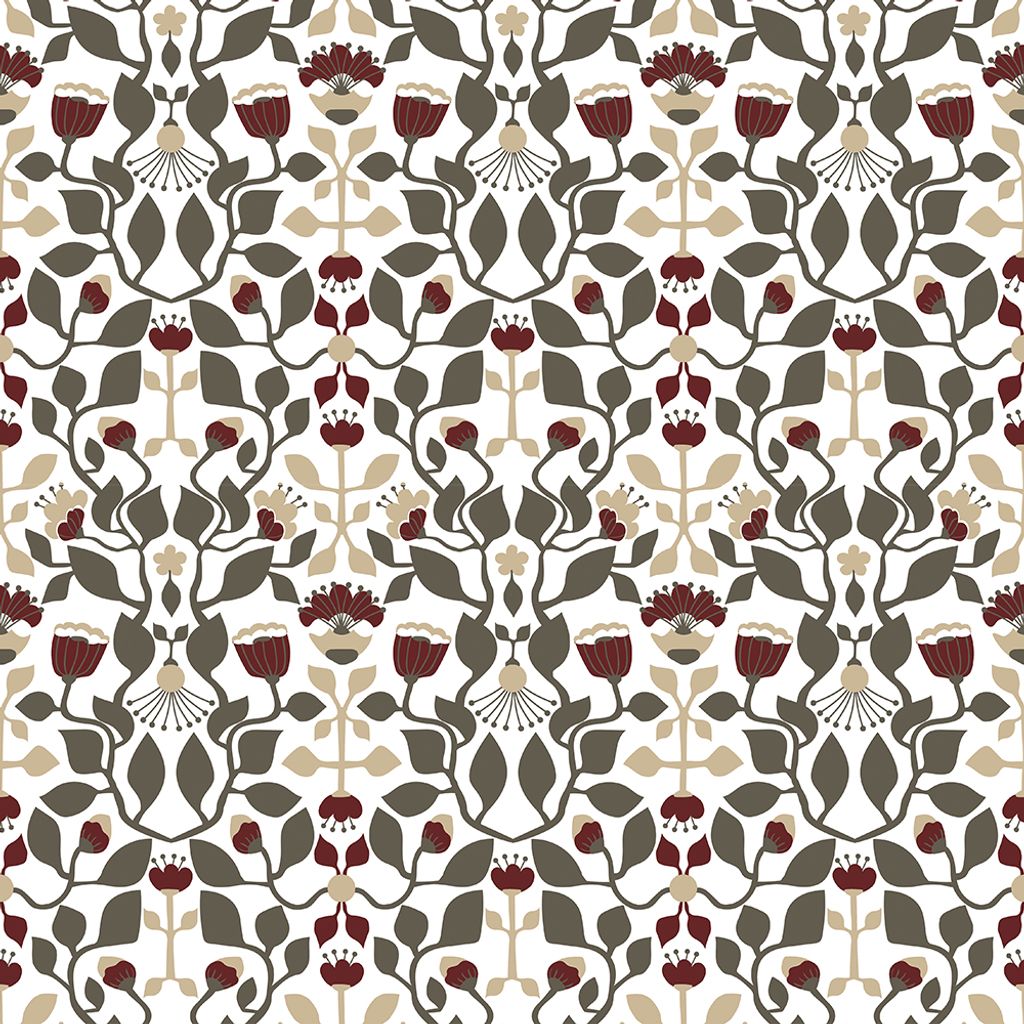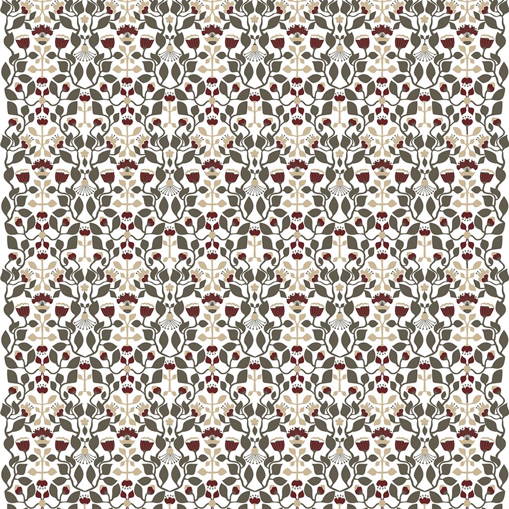 Blomstersnår Brun är ett dekorativt gardintyg med tätt, stiliserat blommönster i jordnära färgtoner. Detaljer i brunt, vinrött och offwhite skapar ett levande och grafiskt uttryck – perfekt för dig som vill ha ett inredningstyg som sticker ut utan att ta över.
