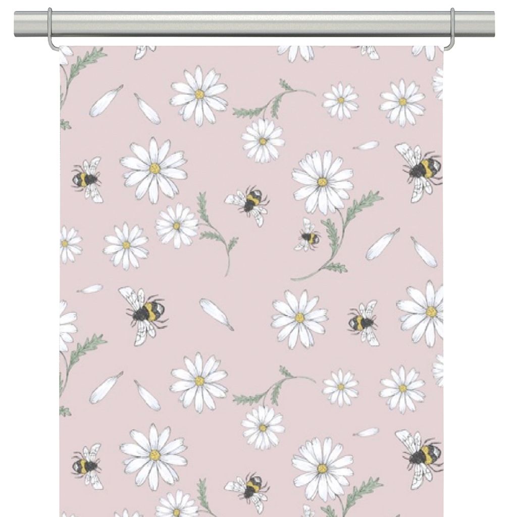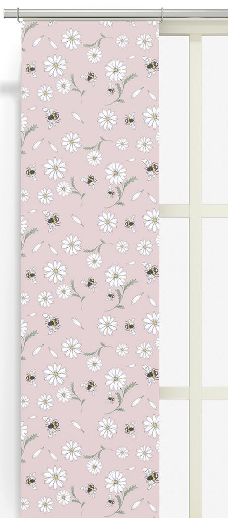 2-pack panelgardiner med rosa botten, prästkragar och surrande insekter från Arvidssons textil.