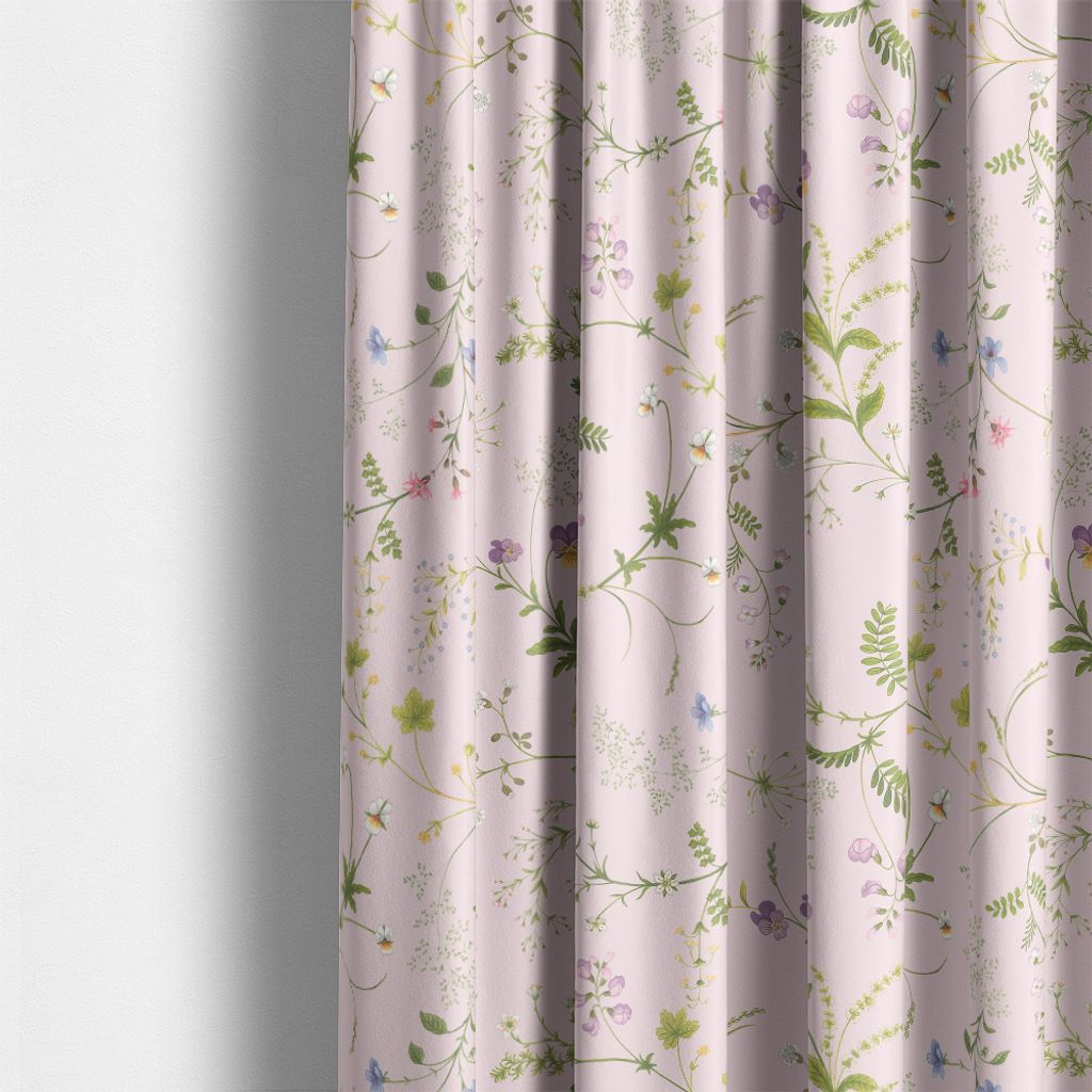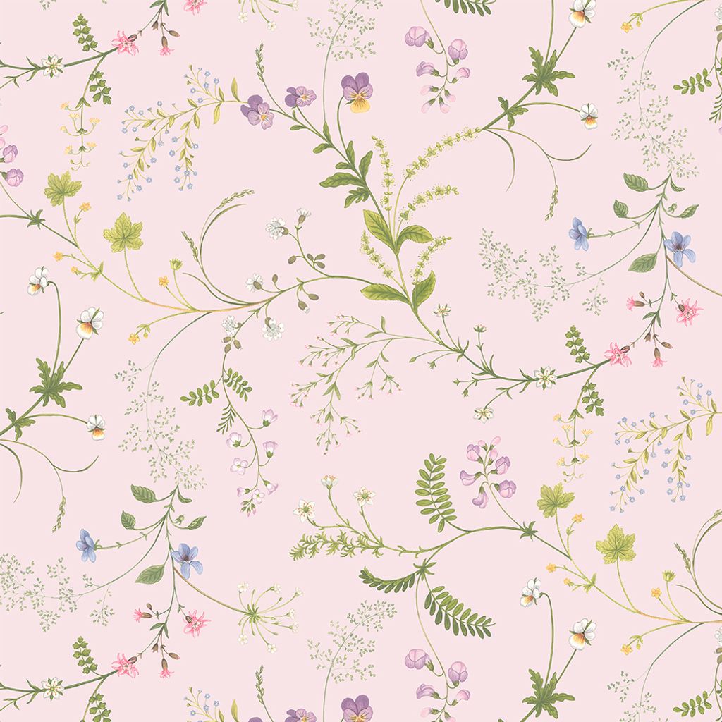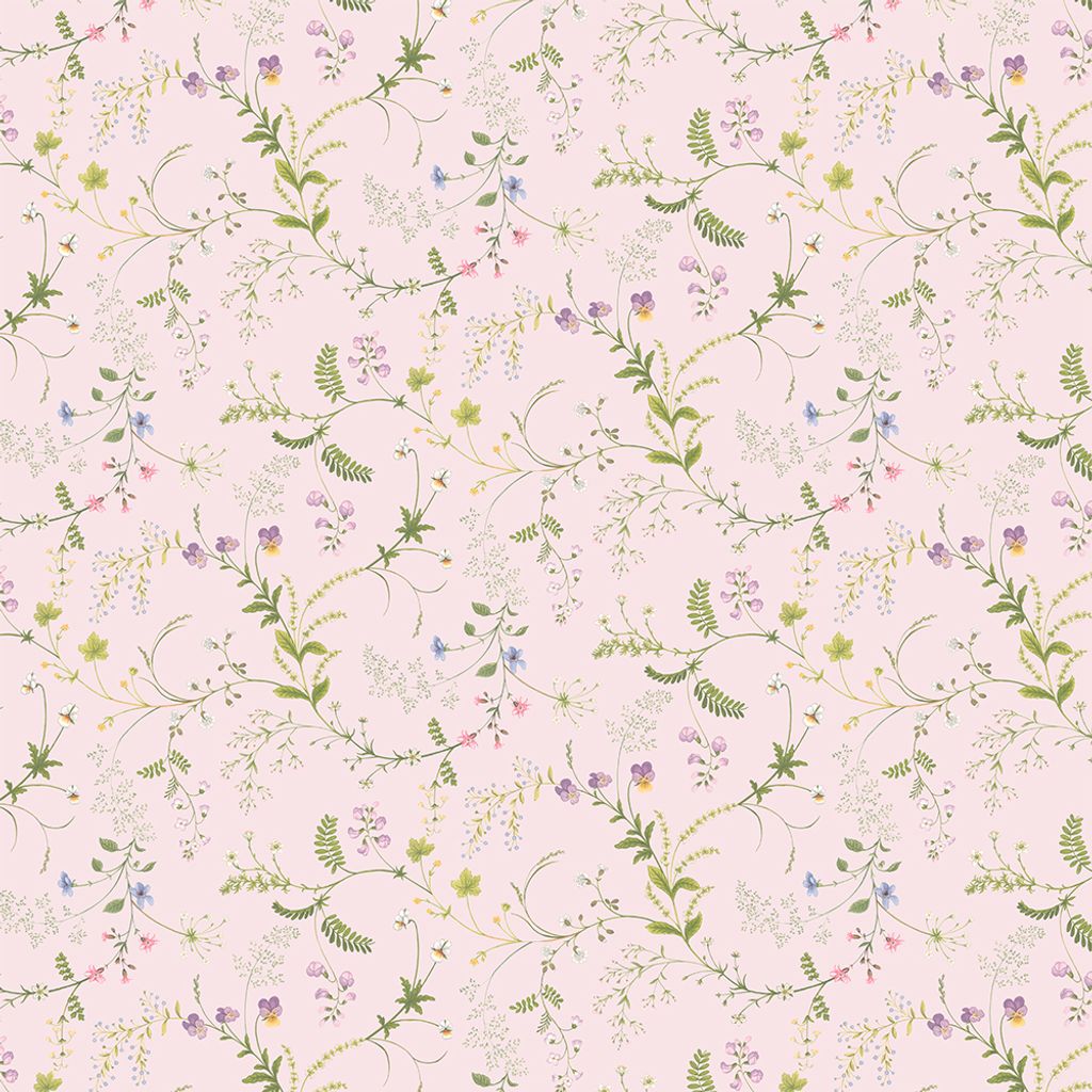 Låt dig svepas med av naturens skönhet med Blomsteryra ljusrosa tyg. Ett romantiskt tyg med ett sprudlande blommönster i mjuka rosa toner, perfekt för gardiner, kuddar och andra heminredningsprojekt. Producerat i Spanien och tillverkat av 100 % bomull för en harmonisk känsla.