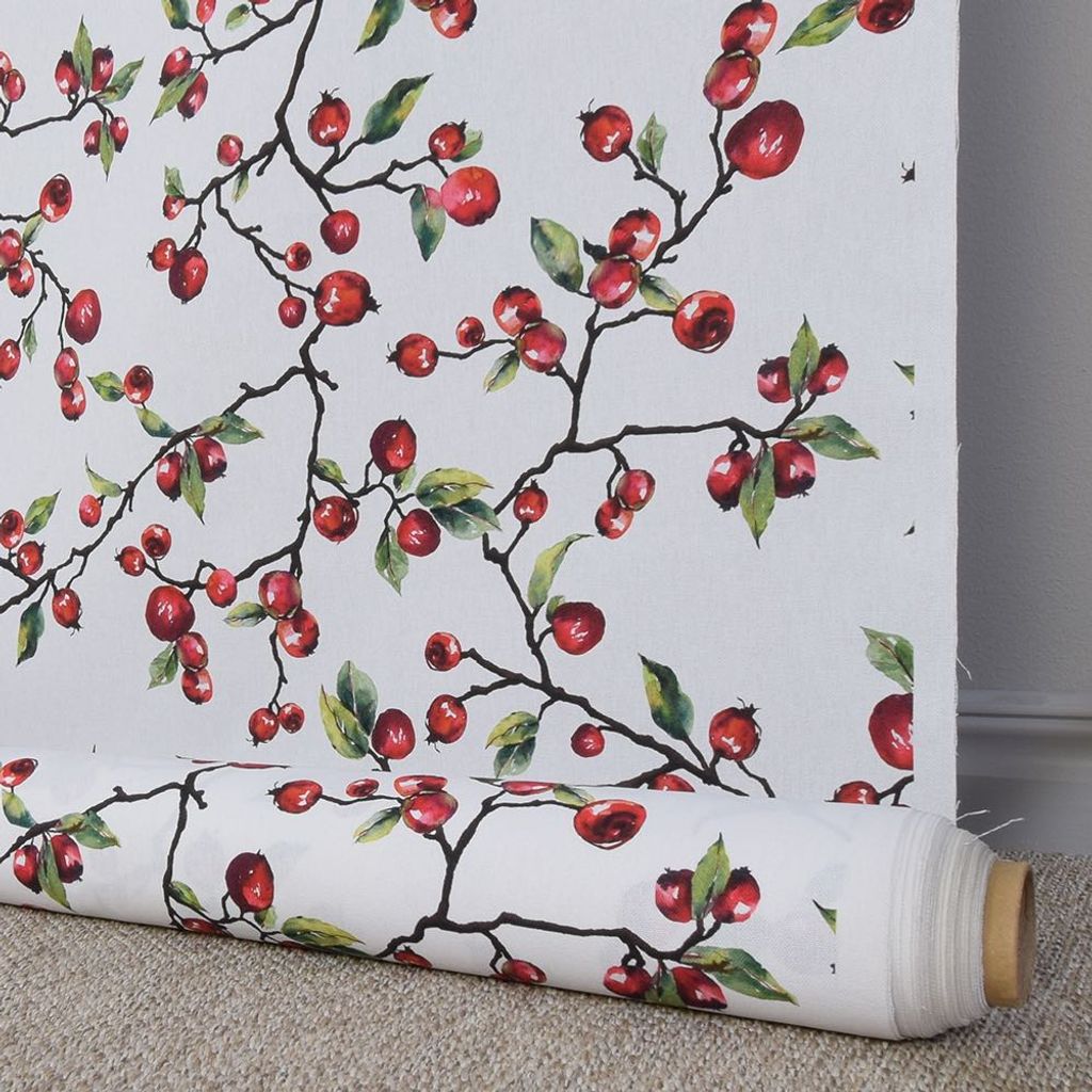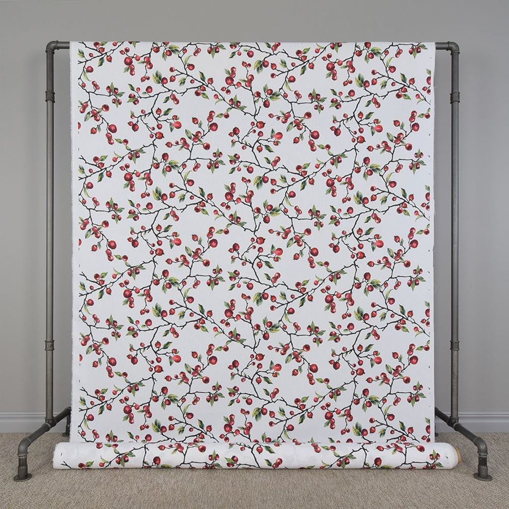 Metervara i bomull med nypon. Tyg till tygkasse, kuddar, gardiner