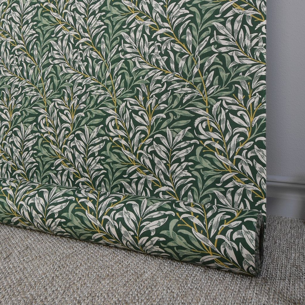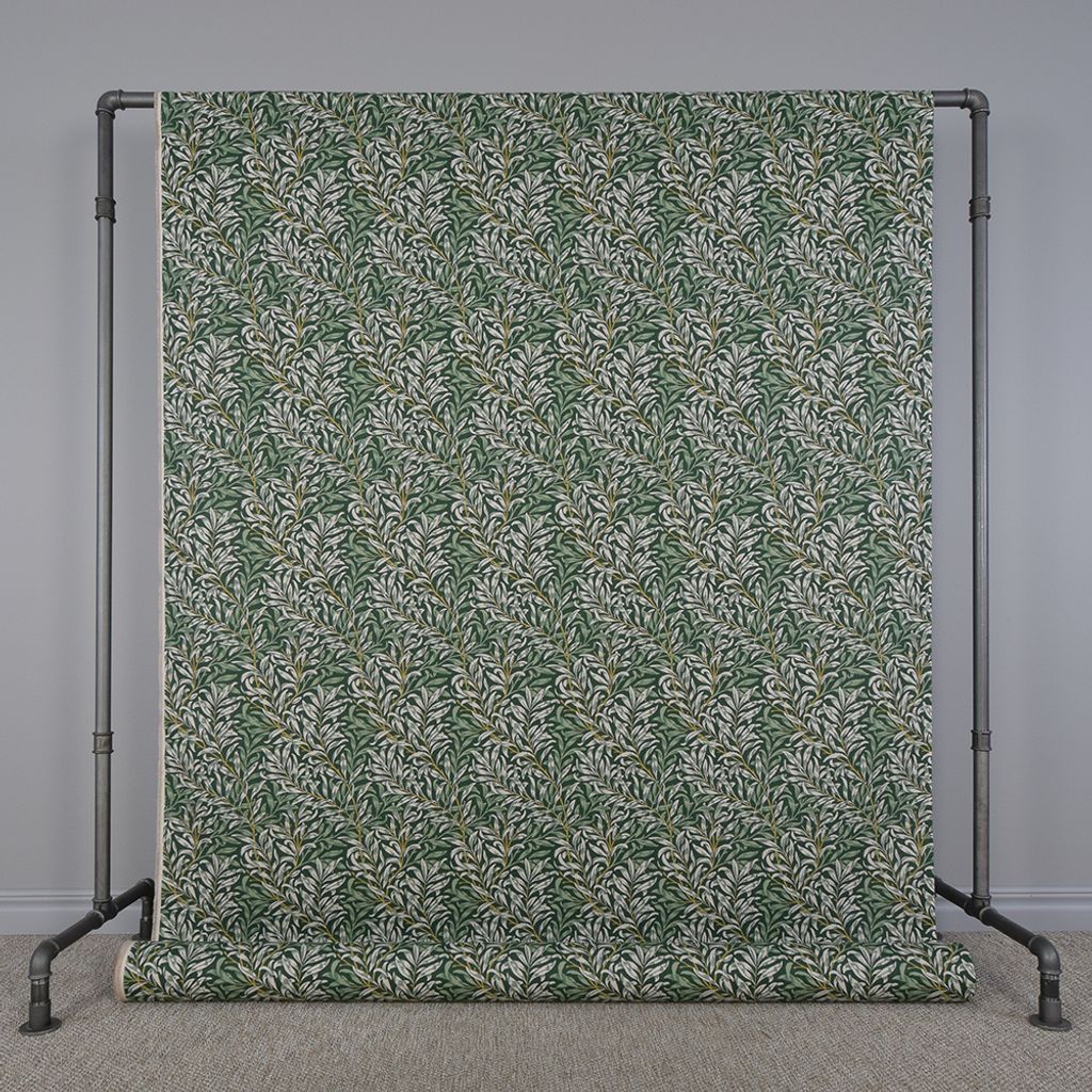 Grönt tyg med blad och kvistar i morris stil. Passar utmärkt till gardiner, duk och kuddar. Halv Panama Premium