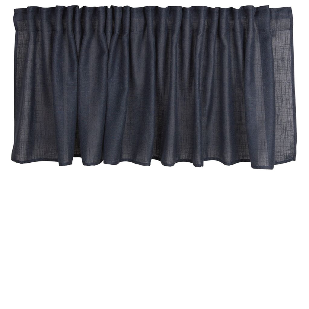 Blå färdigsydd gardinkappa med multiband. Fin tunn gardin i polyester/ viskos och linnelook. 55x250cm