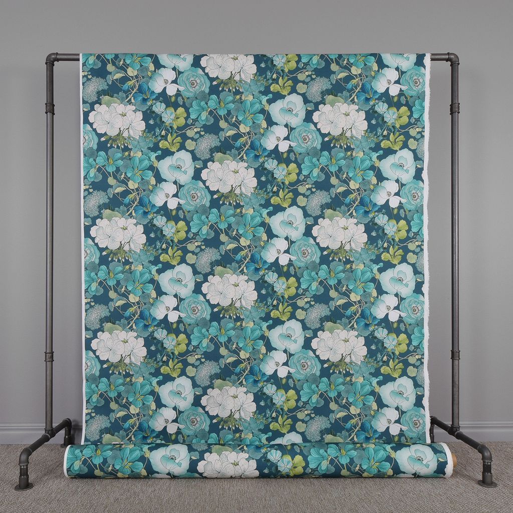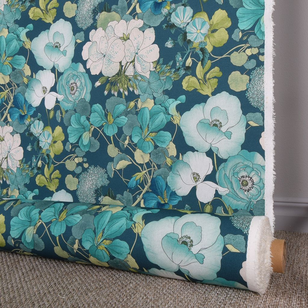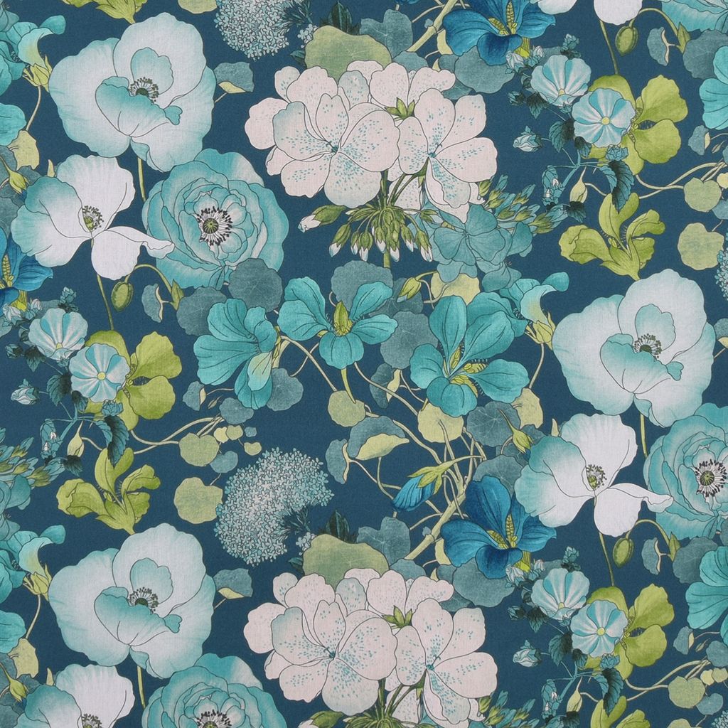 Capucine blå gardintyg är ett vackert mönstrat tyg i sval blå färgskala med ett botaniskt uttryck. Perfekt till gardiner, men fungerar även utmärkt till andra inredningstextilier som kuddar, dukar eller draperier.