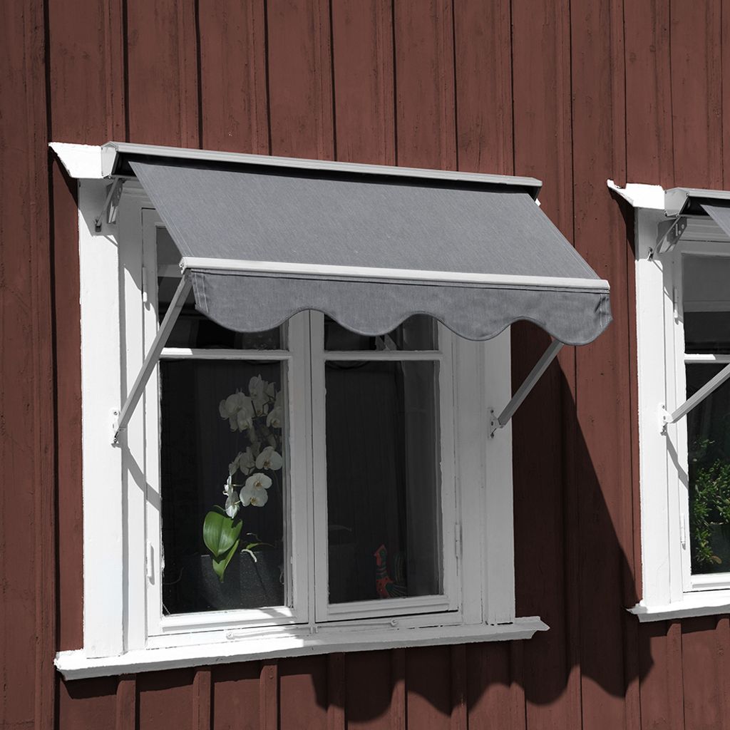 Detta tyget är inte helt vattentätt utan ska användas som markis som dras in när det regnar och blåser.