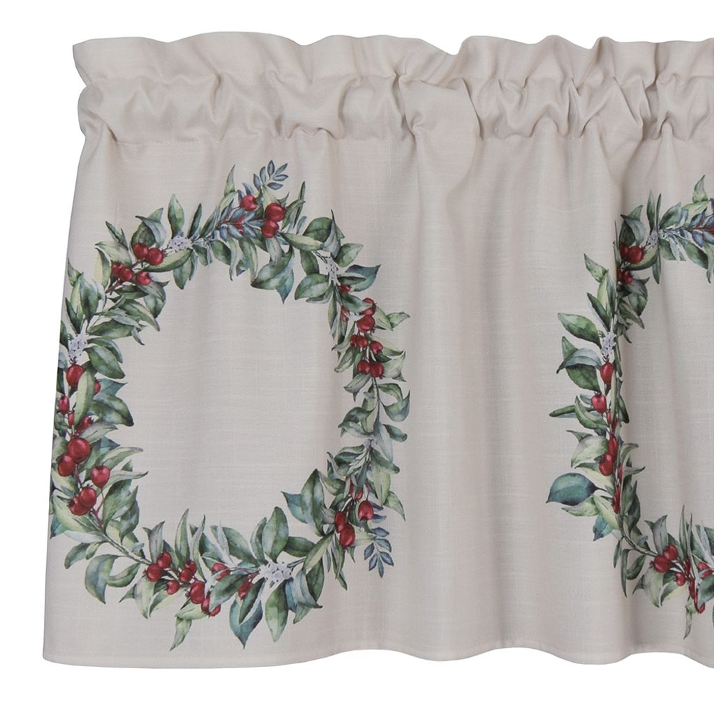 Christel gardinkappa från Boel & Jan har ett stilrent motiv av grönt blad och röda bär i form av en krans. Säljs på metervara och passar fint både till jul och för en naturnära känsla året om.