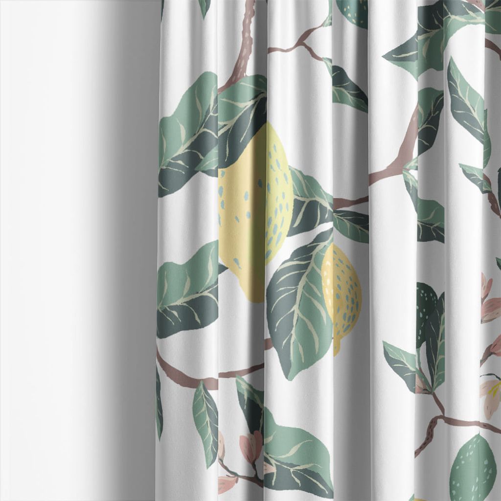 Blommande citronträd med gula citroner och vackra blommor. Mönstret är tryckt på Arvidssons klassiska bomullsvara