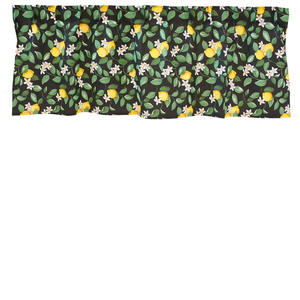 Beskrivning av Citronlycka svart gardinkappa med citroner metervara