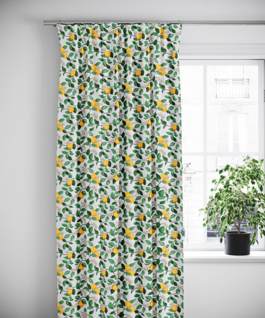 Beskrivning av Citronlycka vit gardiner med citroner