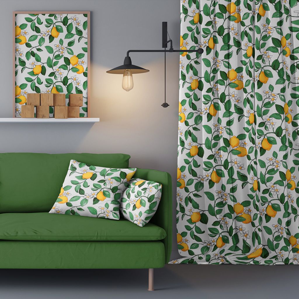 Citronlycka vit gardiner med citroner