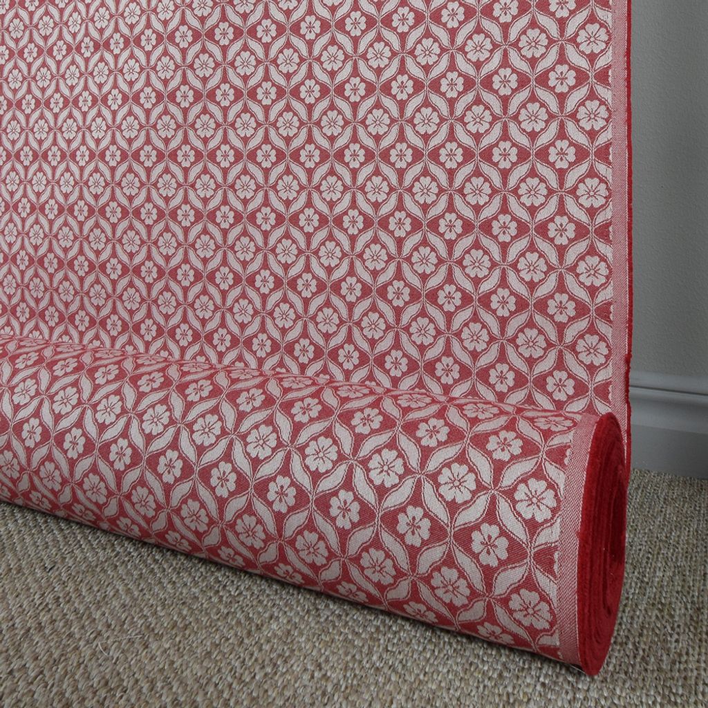 Ett vackert mönstrat bomullstyg som är vändbart, med motsatta färger på baksidan för extra variationsmöjligheter. Tyget är vävt i naturmaterial, vilket innebär att det kan förekomma mindre svart ludd i väven – en naturlig del av materialets karaktär. Passar utmärkt till gardiner, kuddar, dynor, stolsdynor och dukar.