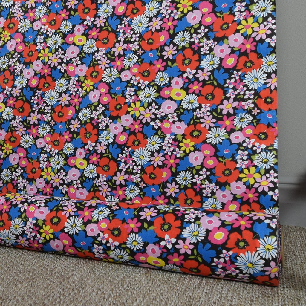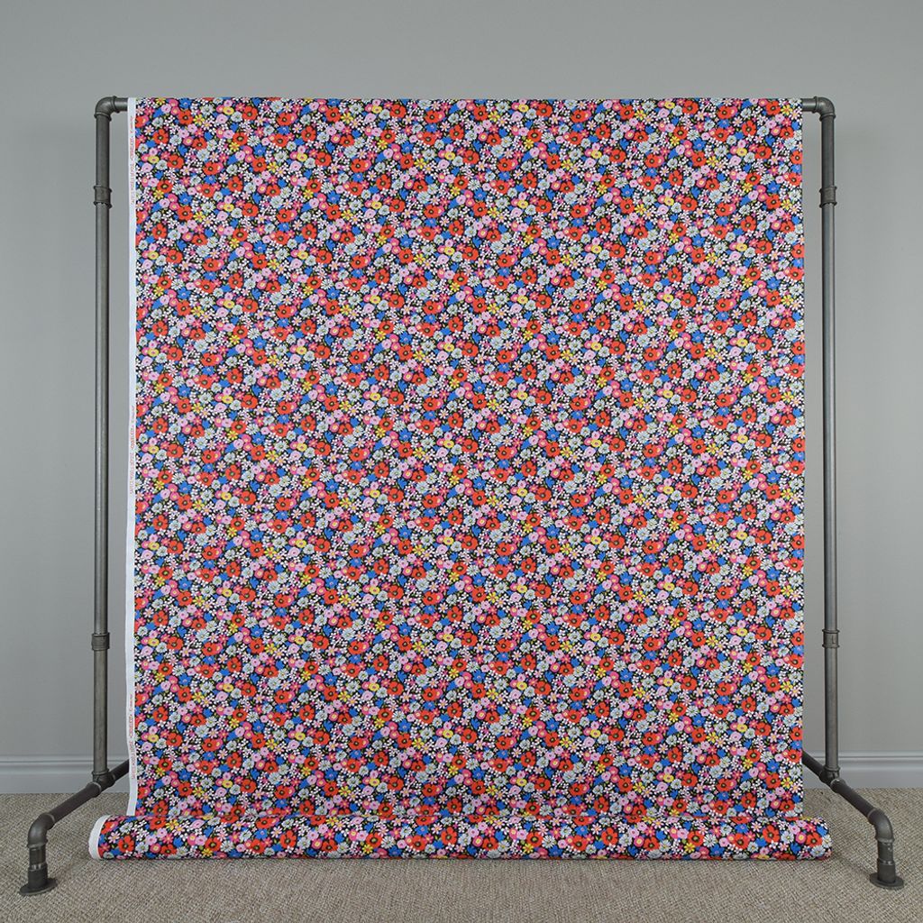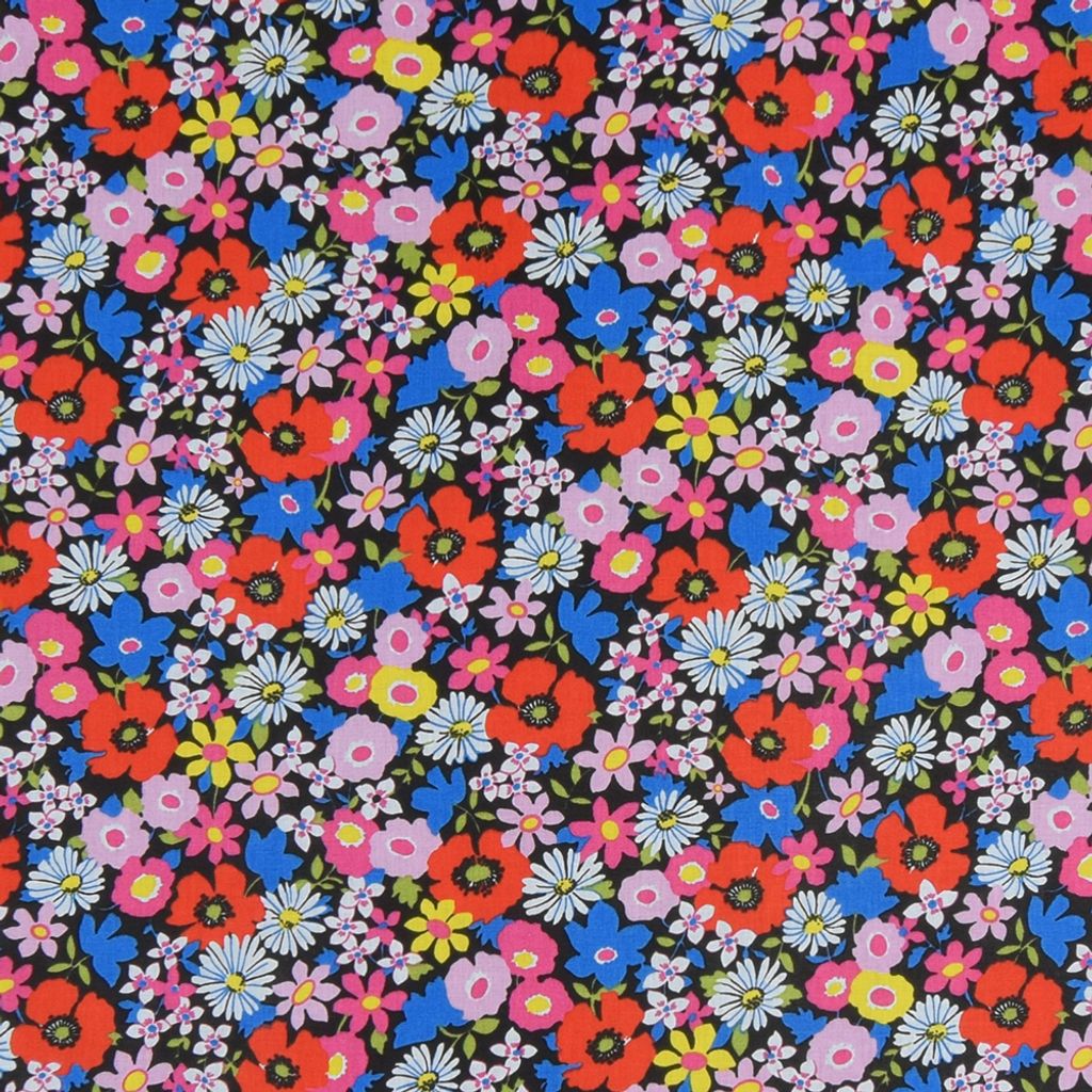 Coquelicot svart tyg - 100% bomullstyg i bredd 150cm med ett härligt färgsprakande mönster av blommor.