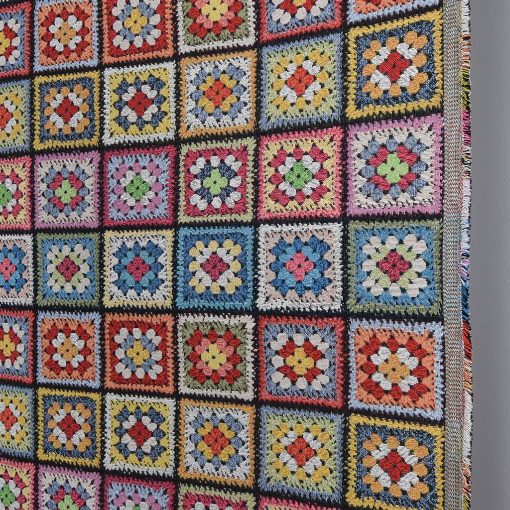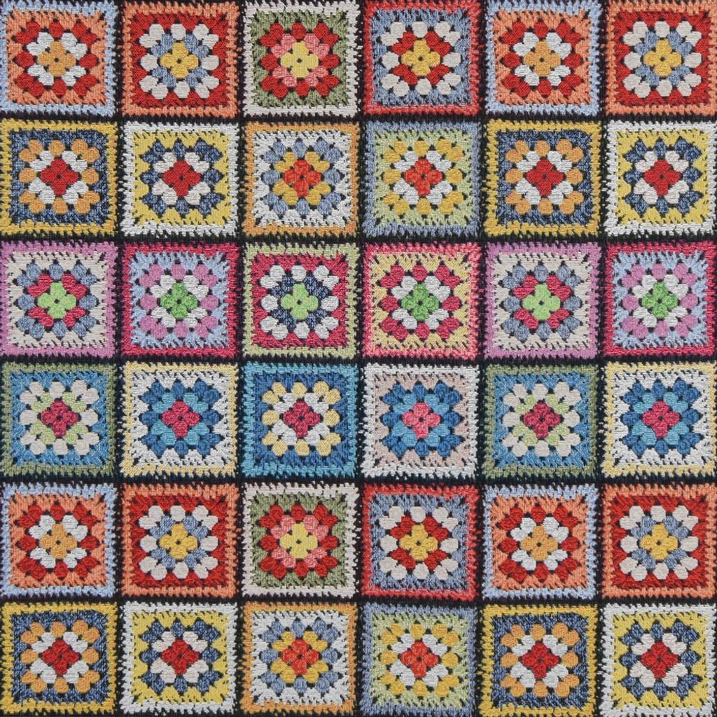 Färgglatt mönster likt mormorsrutor, gobeläng tyg på metervara.