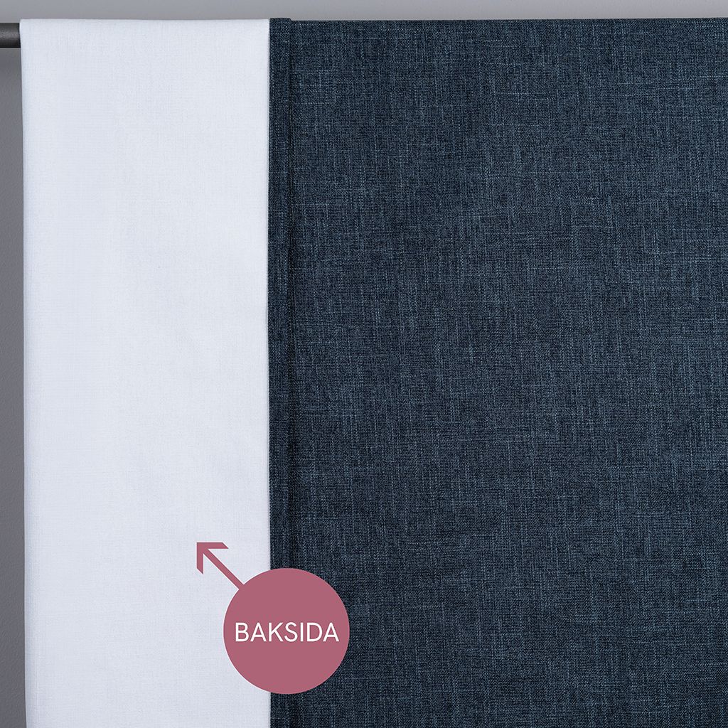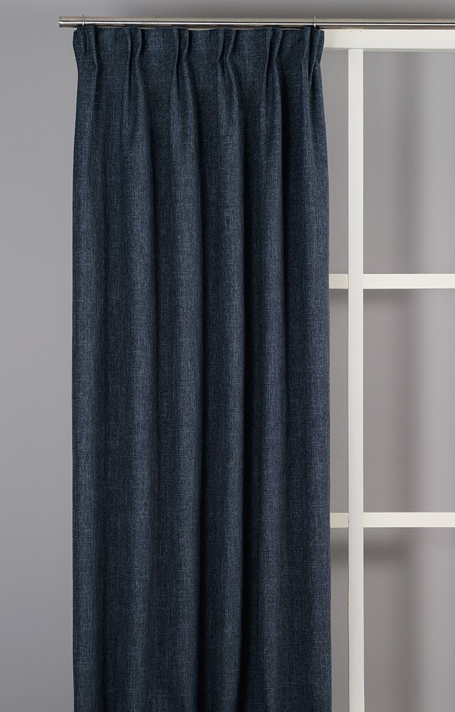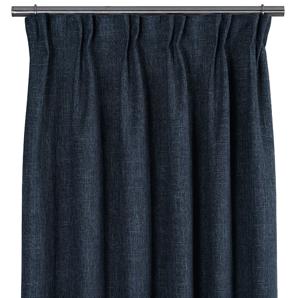 Cru blå är en 100% mörkläggningsgardin i djup, elegant blå ton med fyllig struktur. En perfekt kombination av funktion och dekorativ design som skapar en ombonad och exklusiv känsla i rummet. Ouppfållade med overlocksöm nedtill.