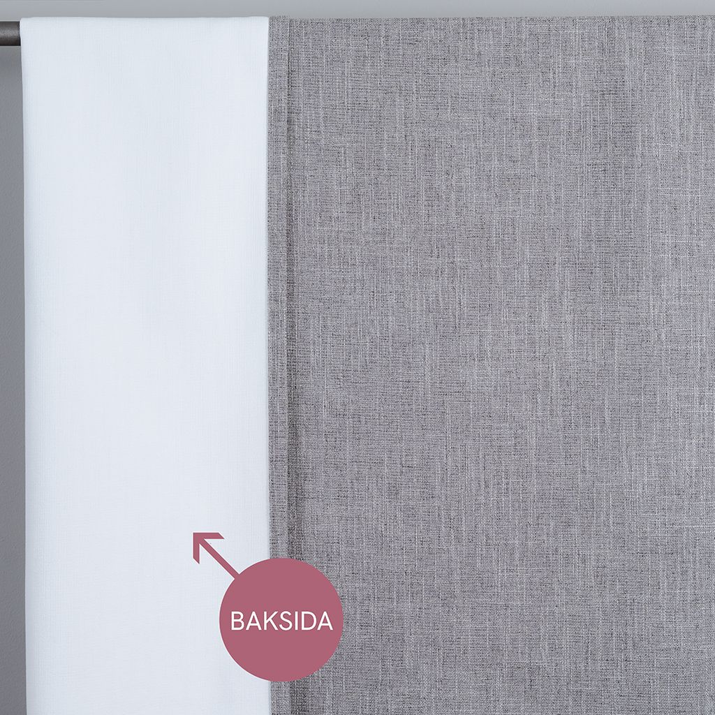 Cru grå är en mörkläggningsgardin som kombinerar funktion och estetik på ett harmoniskt sätt. Den rika, vävda texturen ger tyget en levande och exklusiv känsla som gör gardinen till ett dekorativt inslag i rummet – inte bara en praktisk lösning.
