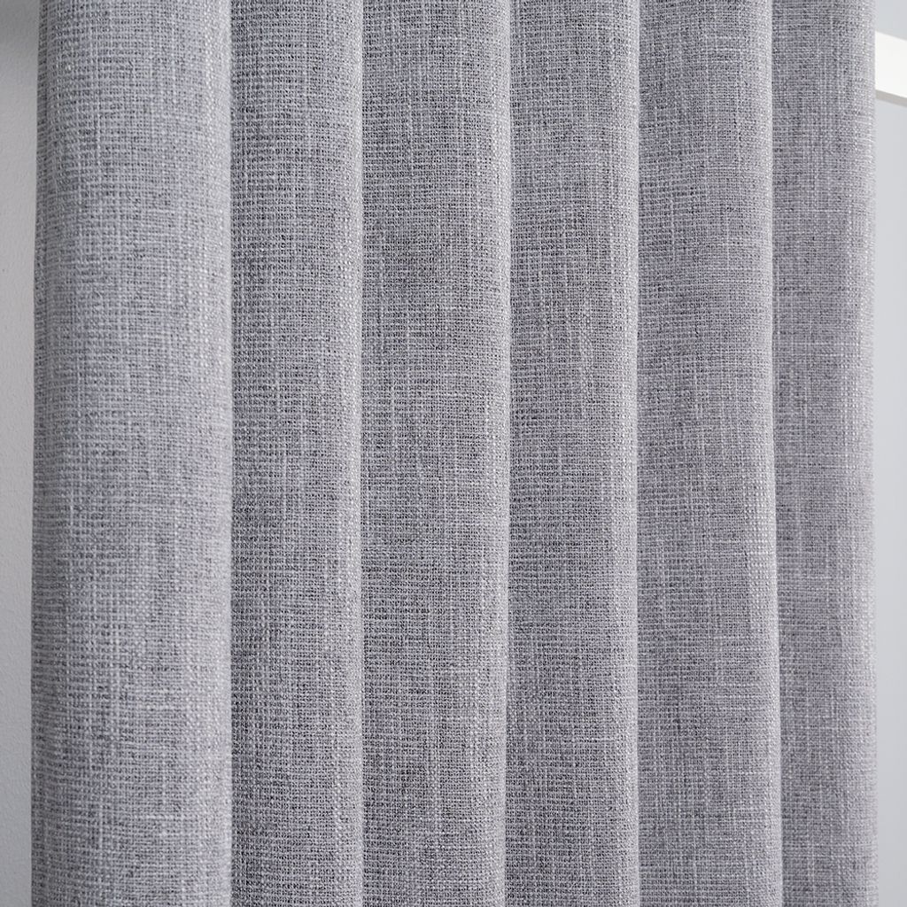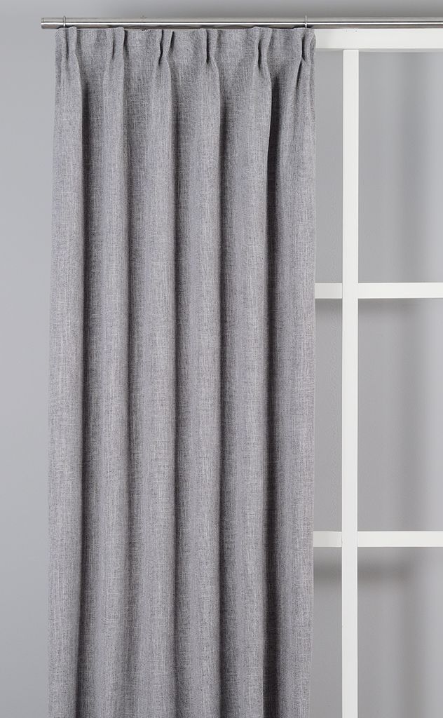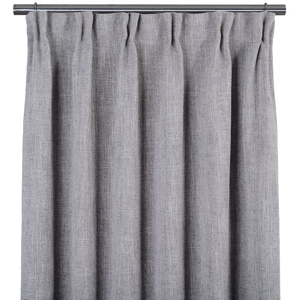 Cru grå är en 100% mörkläggningsgardin i elegant, melerad grå ton med fyllig struktur. En stilren och funktionell gardin som skapar en harmonisk och ombonad känsla i rummet. Ouppfållade med overlocksöm nedtill.