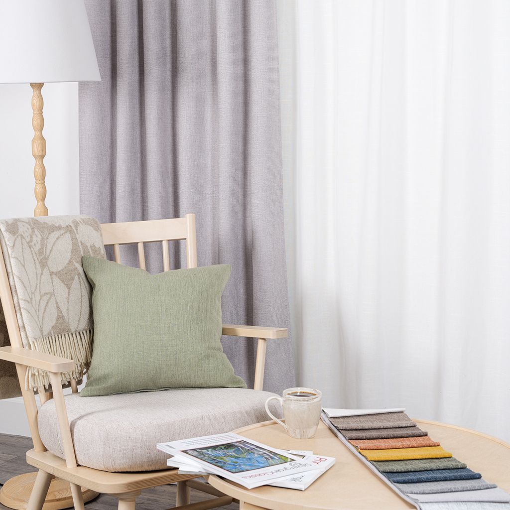 Cru ljusgrå är en stilren och funktionell mörkläggningsgardin som kombinerar effektiv ljusblockering med en exklusiv textilkänsla. Den rika, vävda strukturen ger tyget ett levande djup och en mjuk, taktil yta som gör gardinen till ett dekorativt inslag i rummet – inte bara en praktisk lösning.