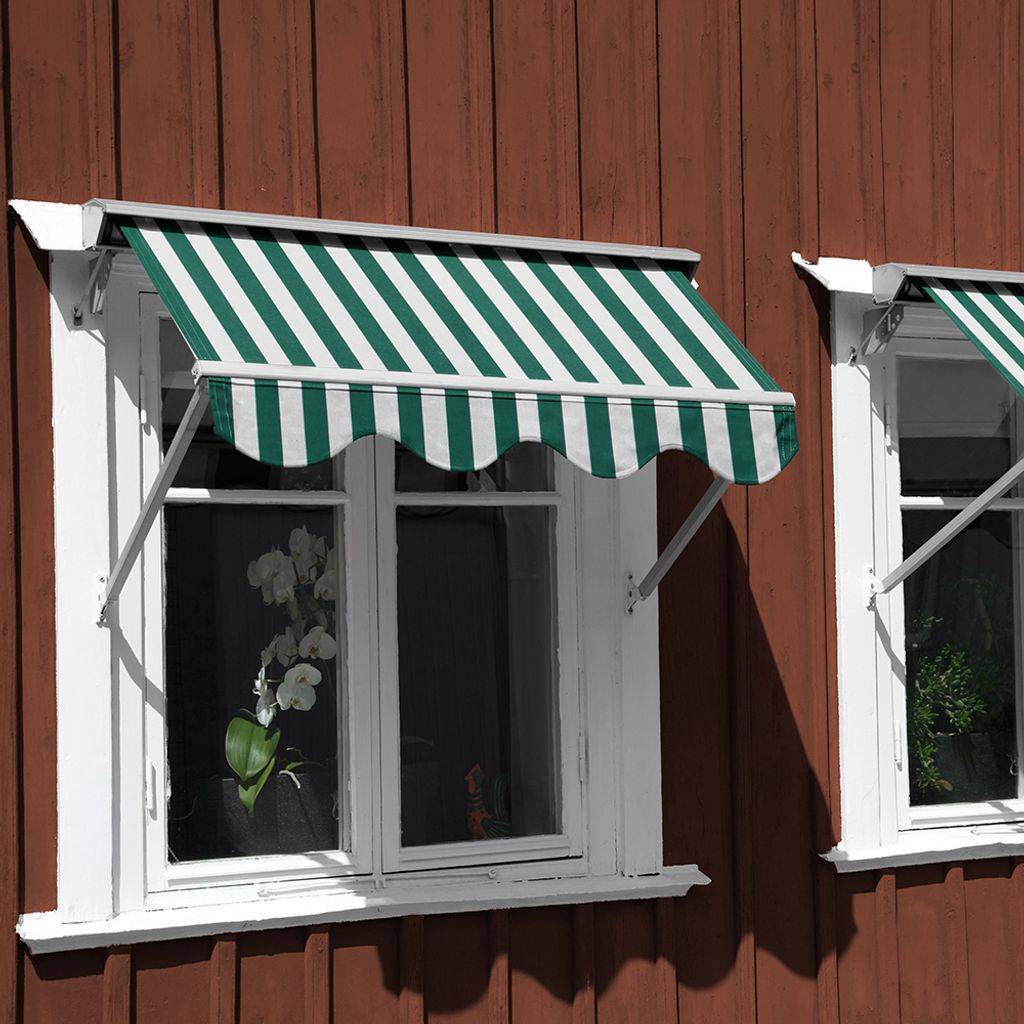 Beskrivning av Dacio Grön-Vit Randig Markisväv 160cm Bred