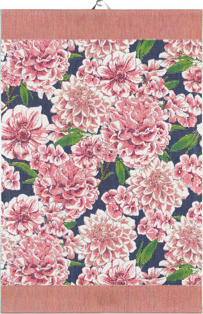 Kökshandduk med ett underbart mönster med blomman dahlia100% Ekologisk bomullMiljömärkta med GOTSTillverkad i Sverige