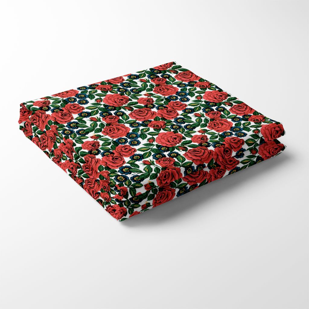 Bomullstyg med Dalarosor på vit botten. Mönstret är handritat av Mialotta Arvidsson-Mars. Duken finns i 3 olika storlekar.