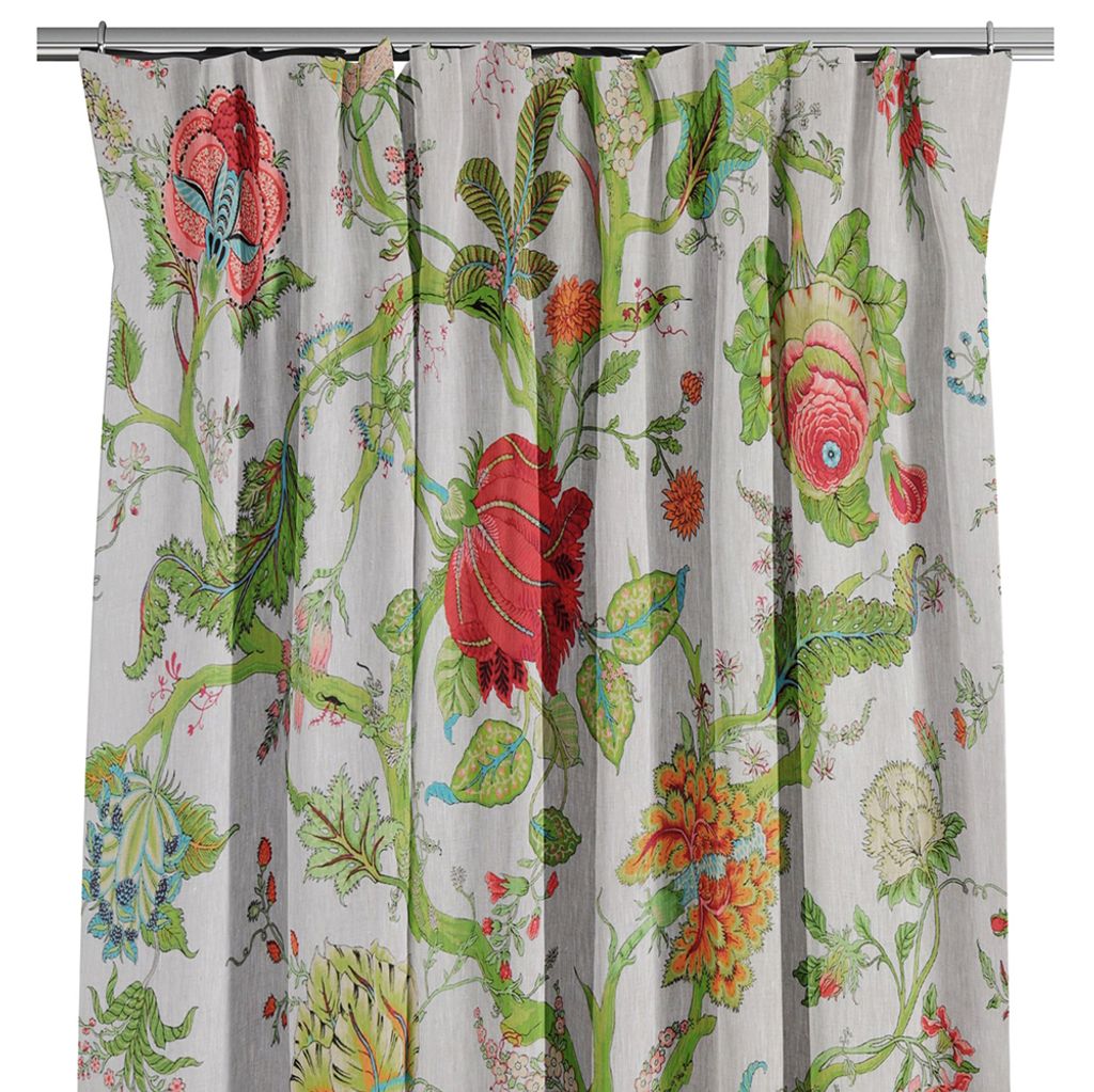 Underbara blommiga linnegardiner med stort färgglatt mönster.